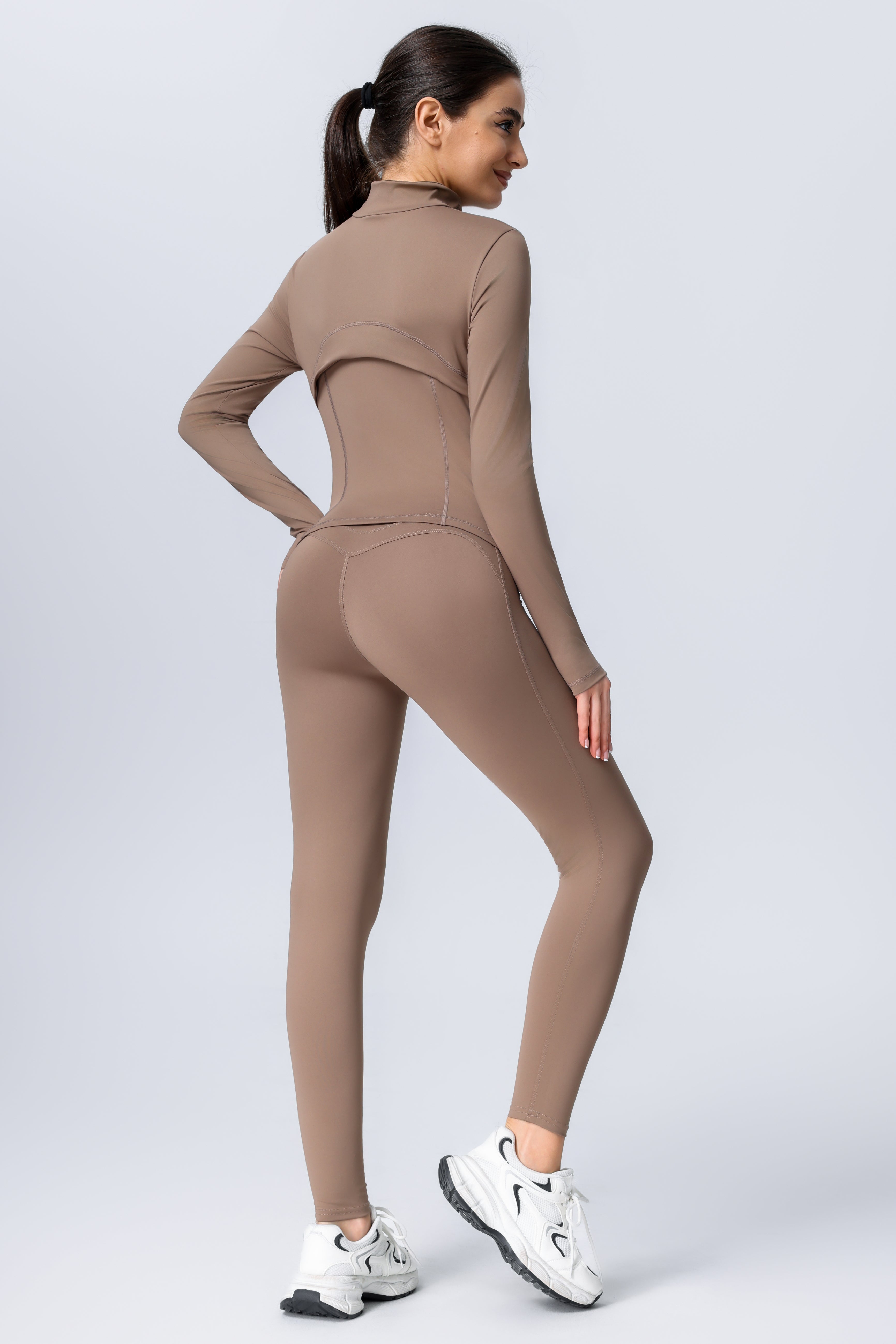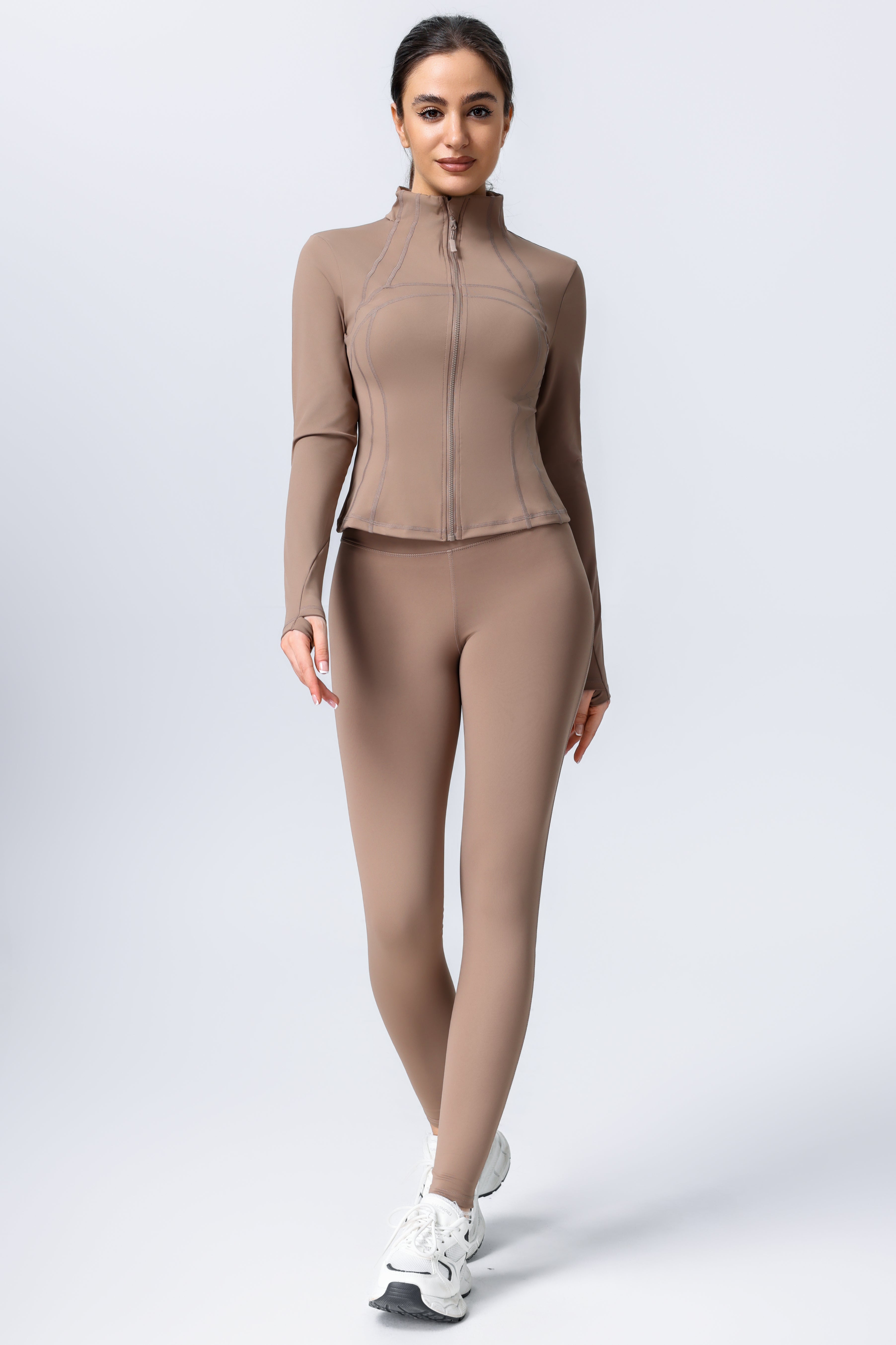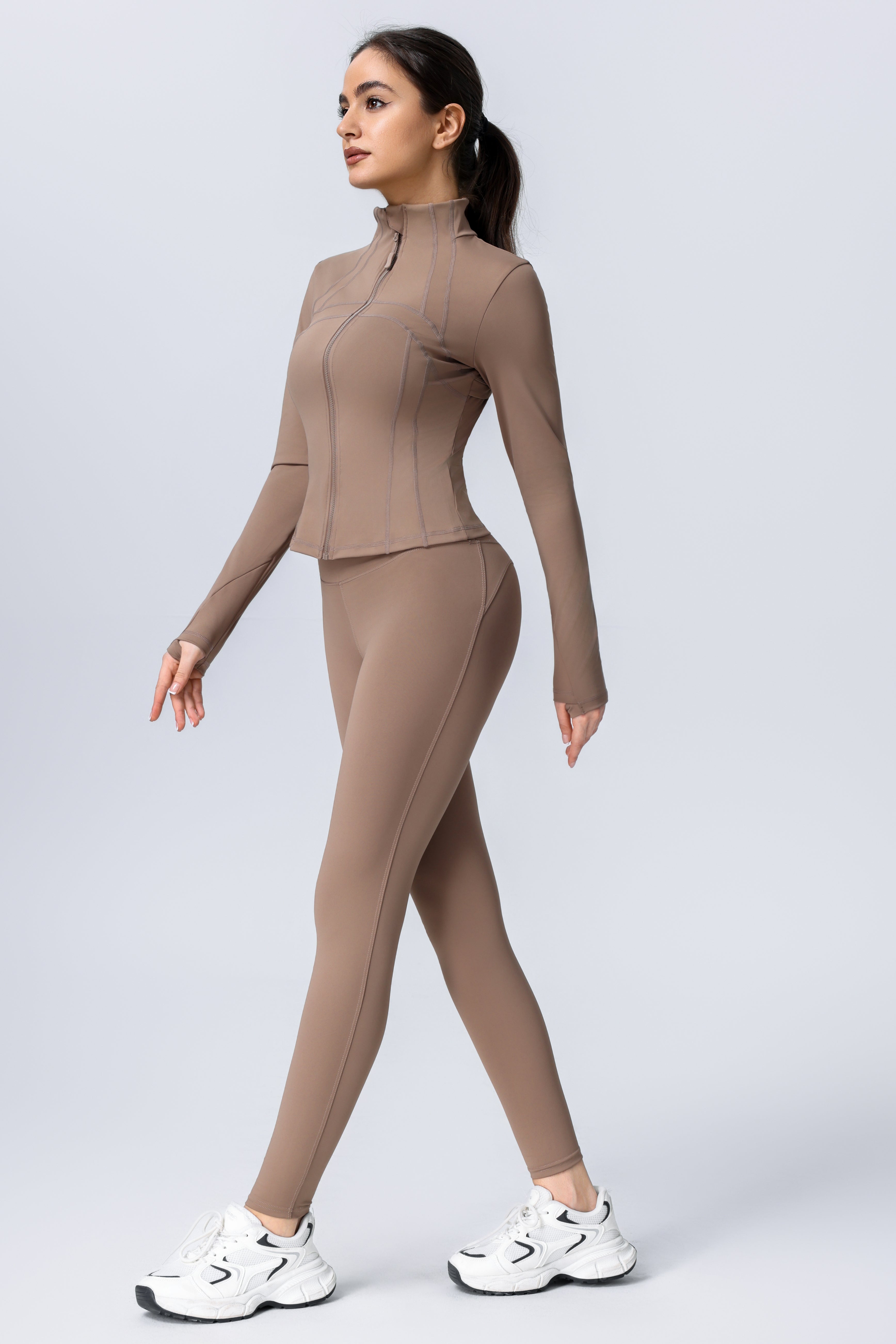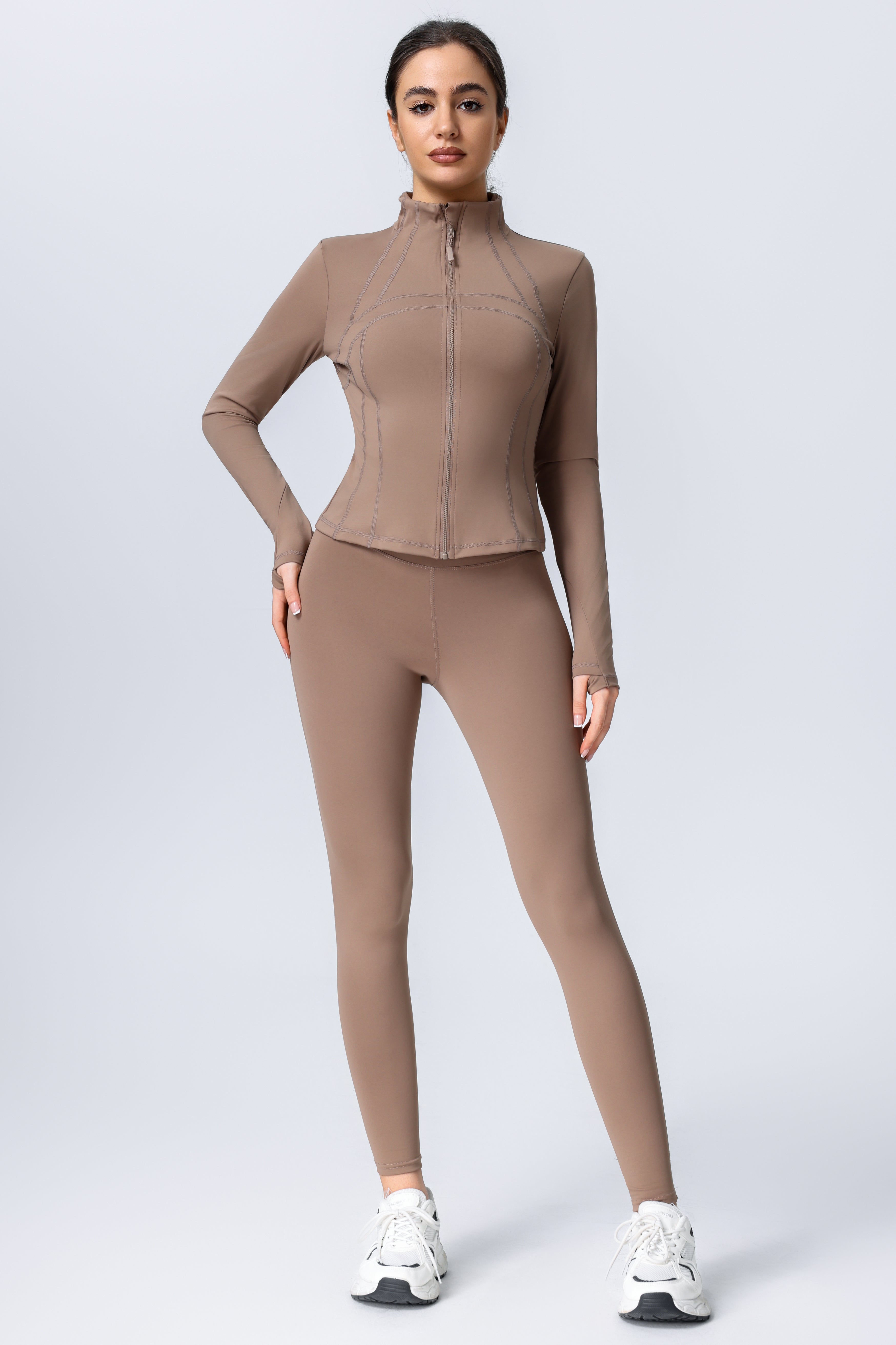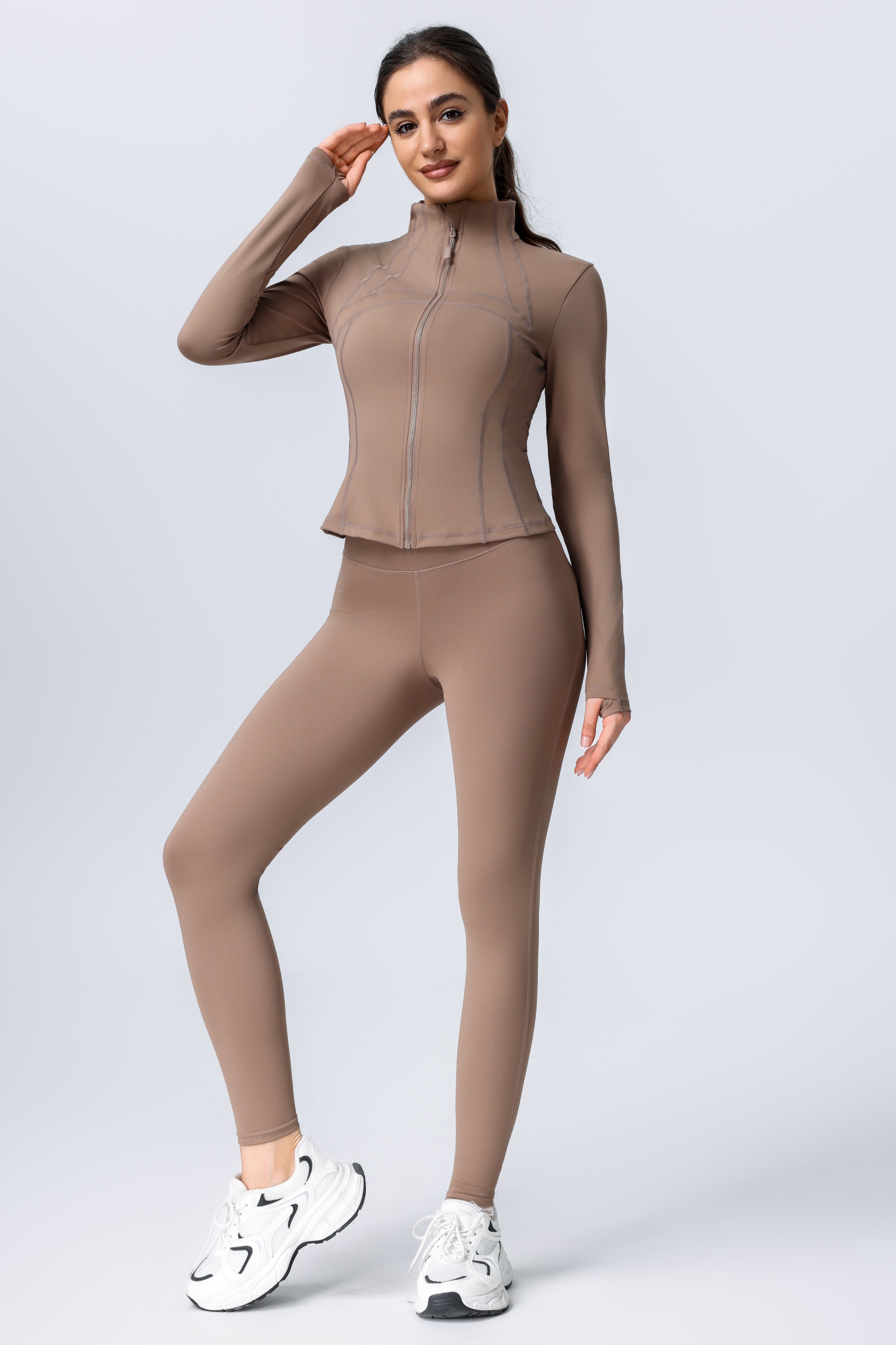 Conjunto de chaqueta deportiva con cremallera y mallas deportivas con pantalones cortos de alta elasticidad