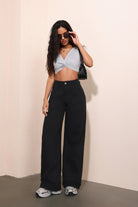 Jeans Anchos Negros Estilo Relajado y Versátil para el Dia a Dia