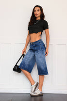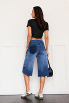 Jeans Culotte Azul Degradado con Detalles Blancos Corte Amp