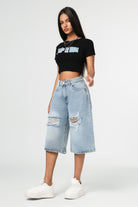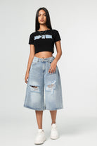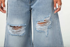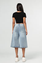 Jeans Culotte con Roturas en Tonos Azul Claro Detalles Estilizados y Corte Amplio