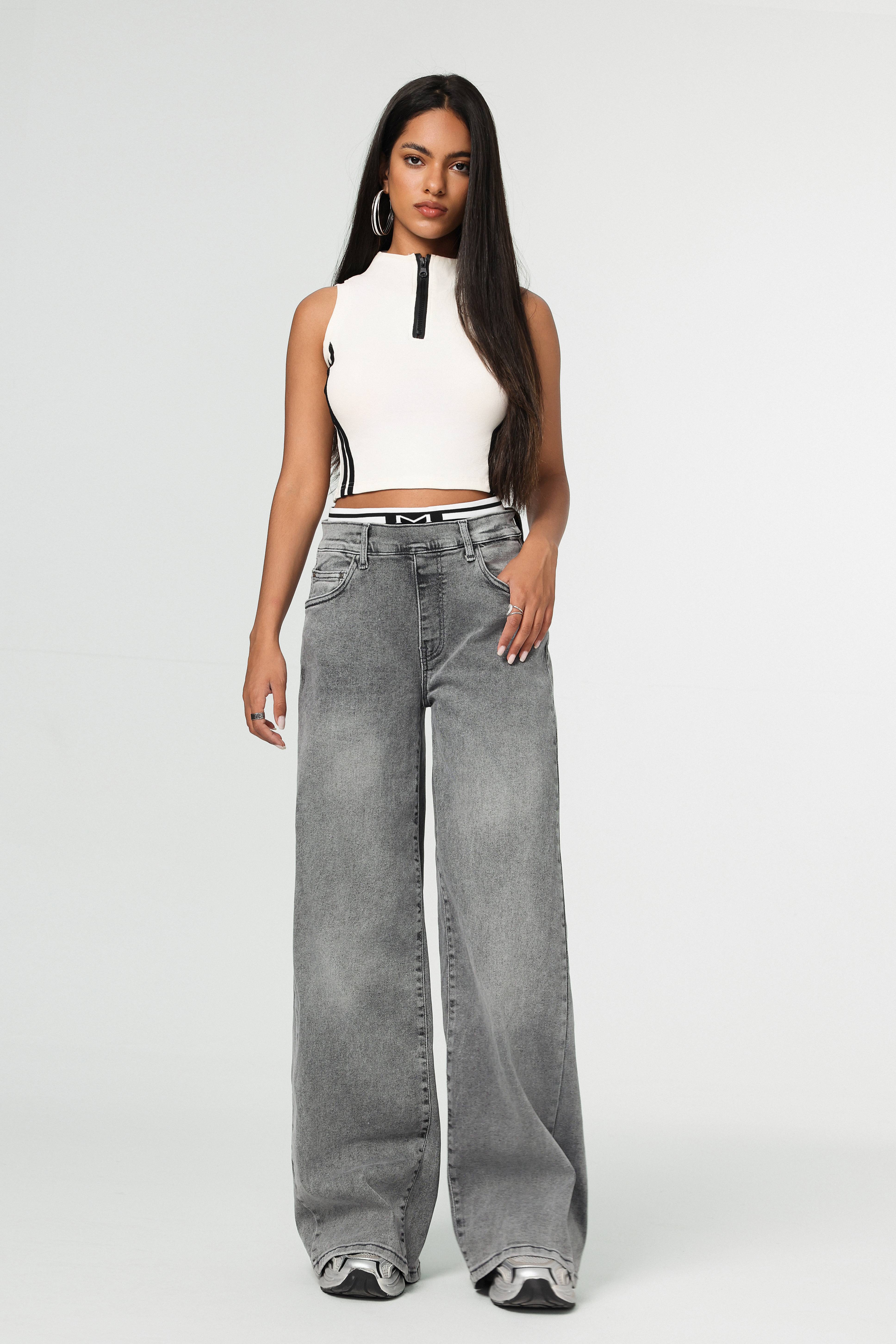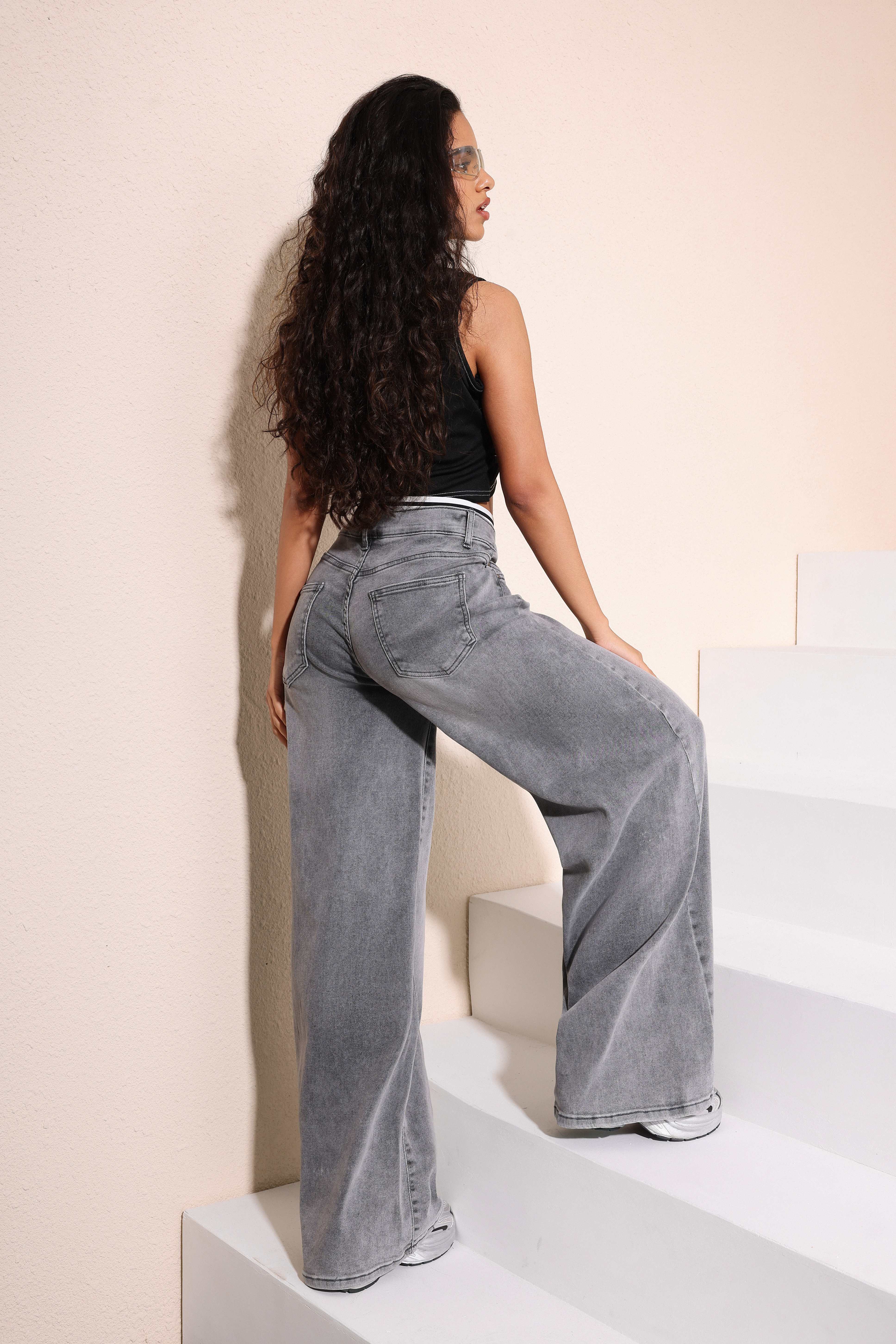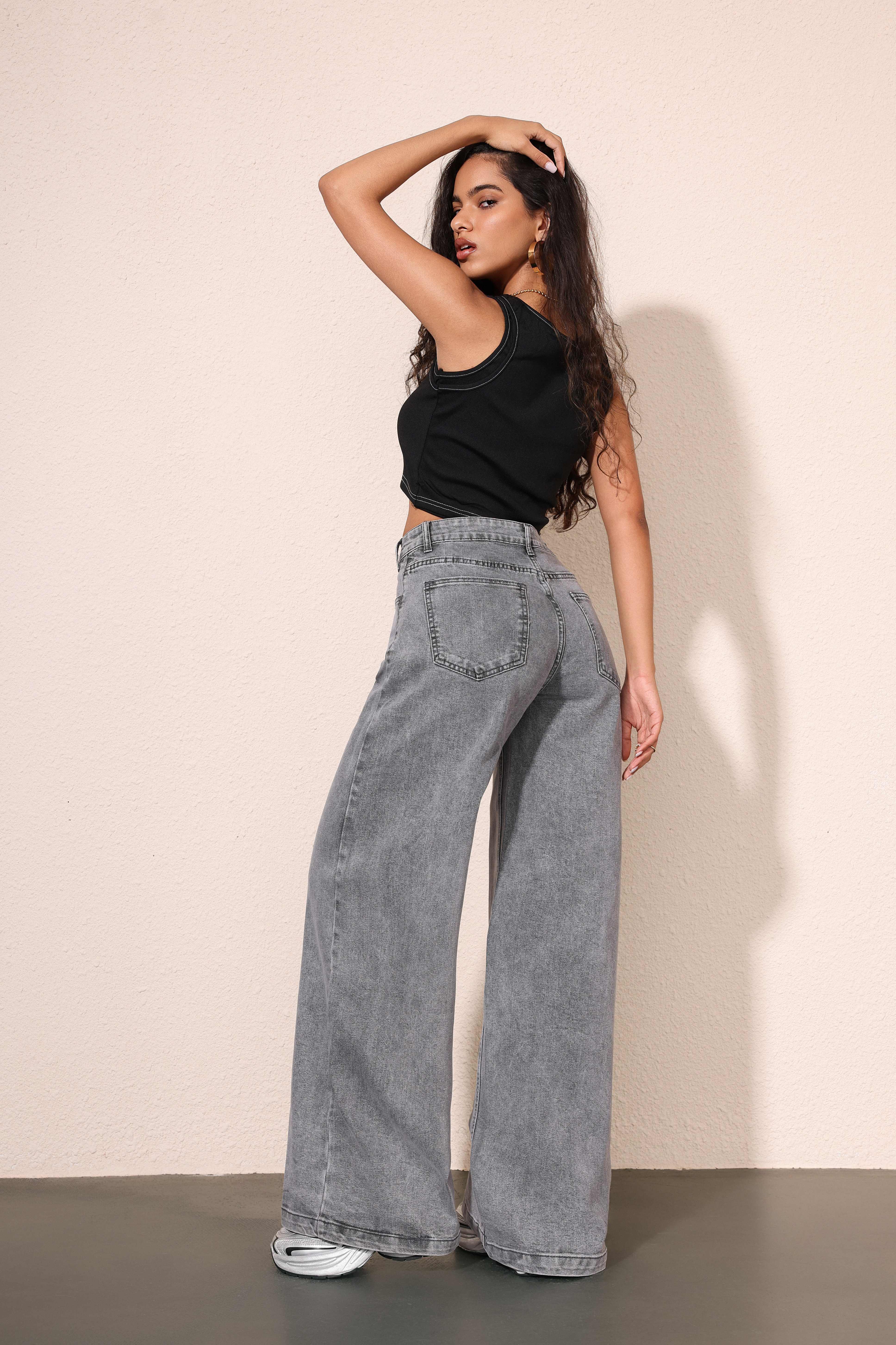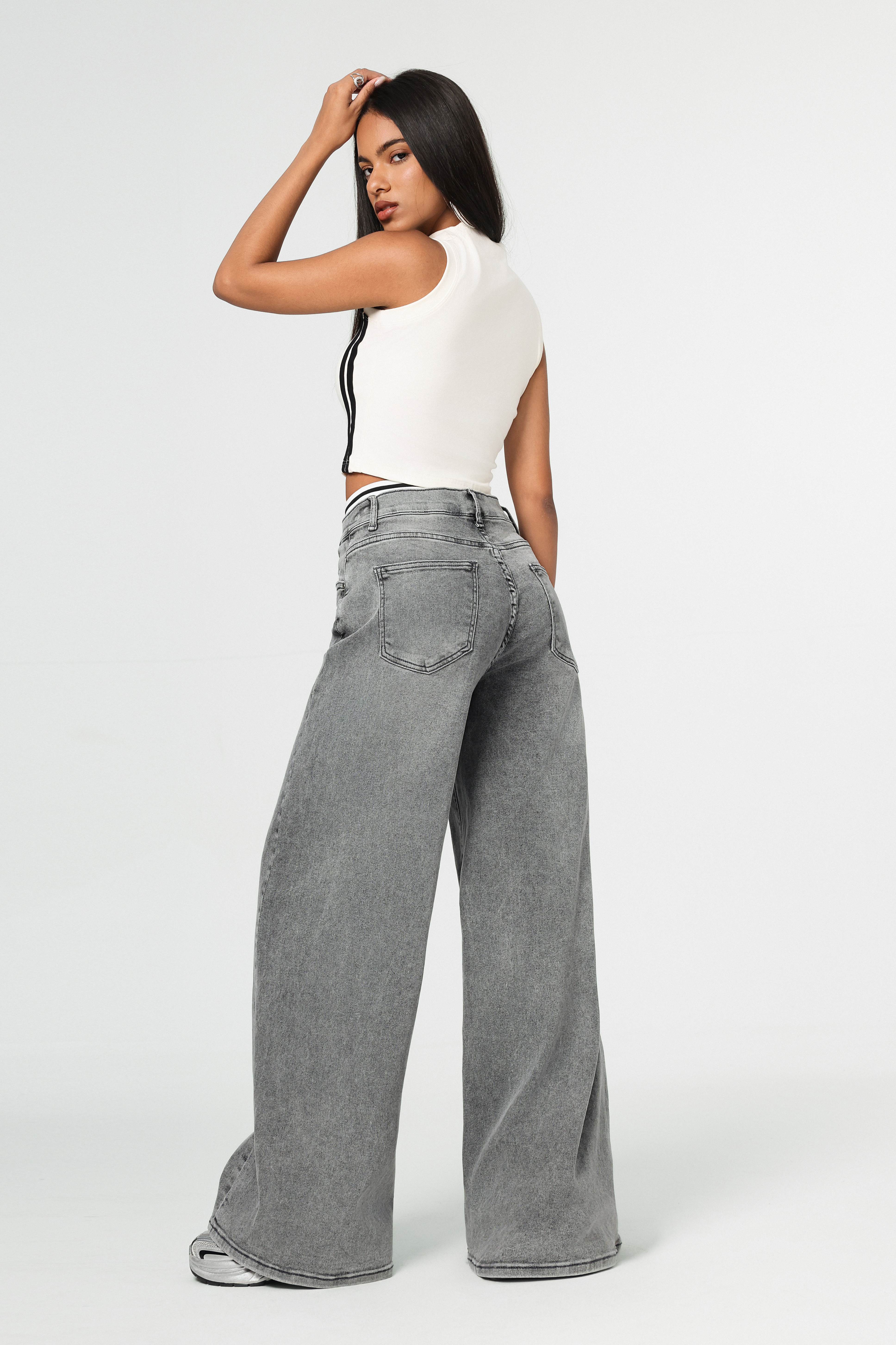 Jeans Anchos Gris Fumée Corte Amplio y Fashion