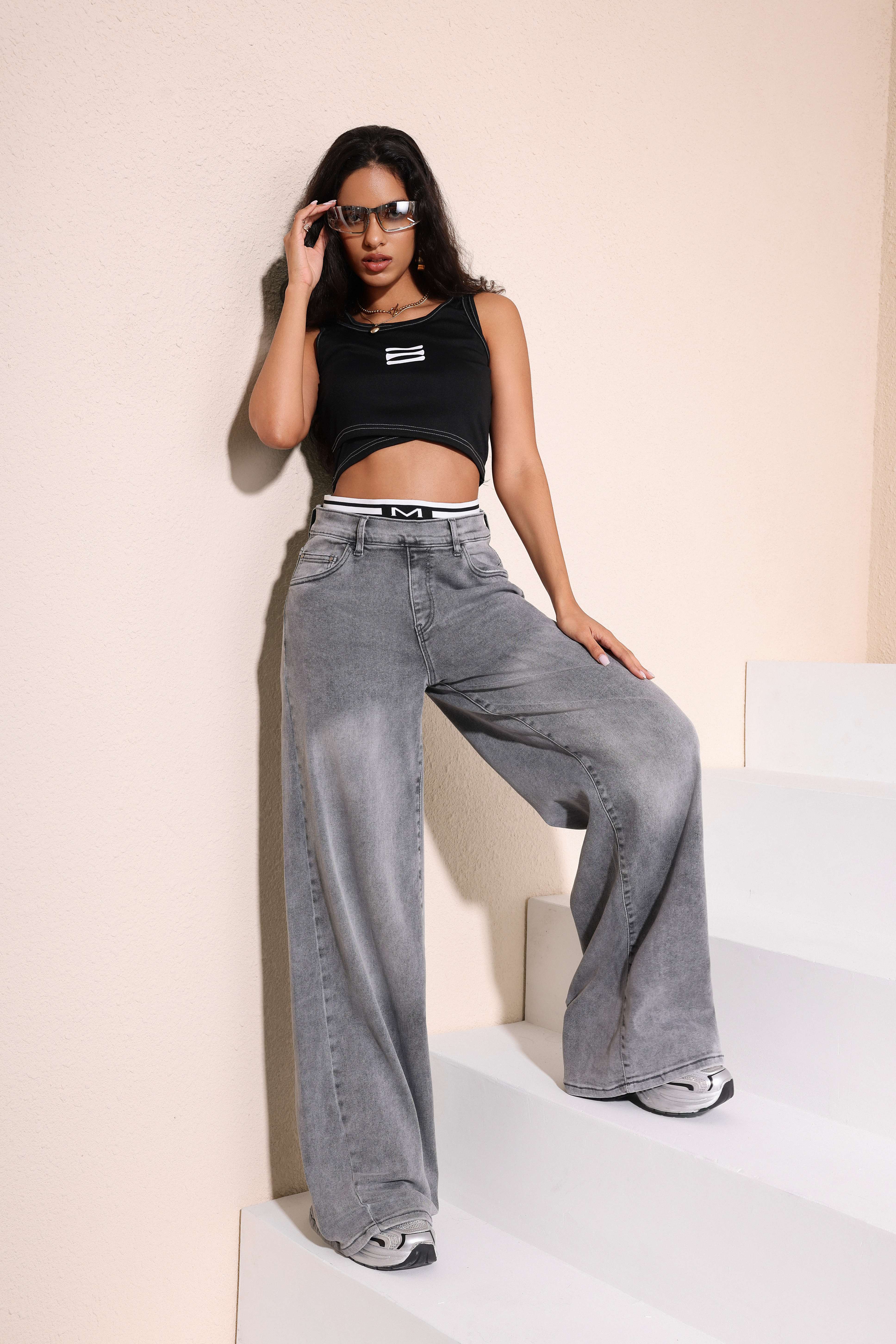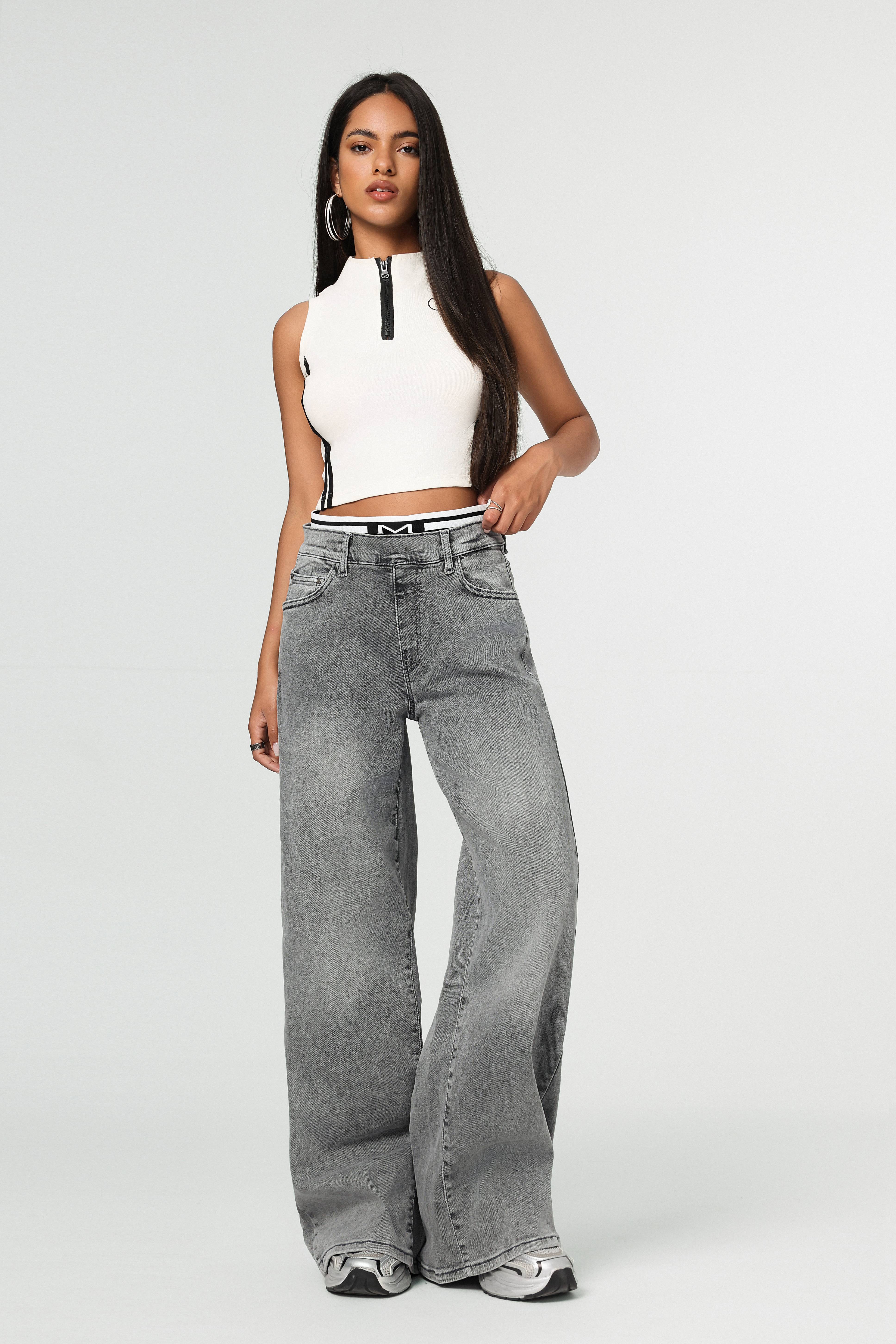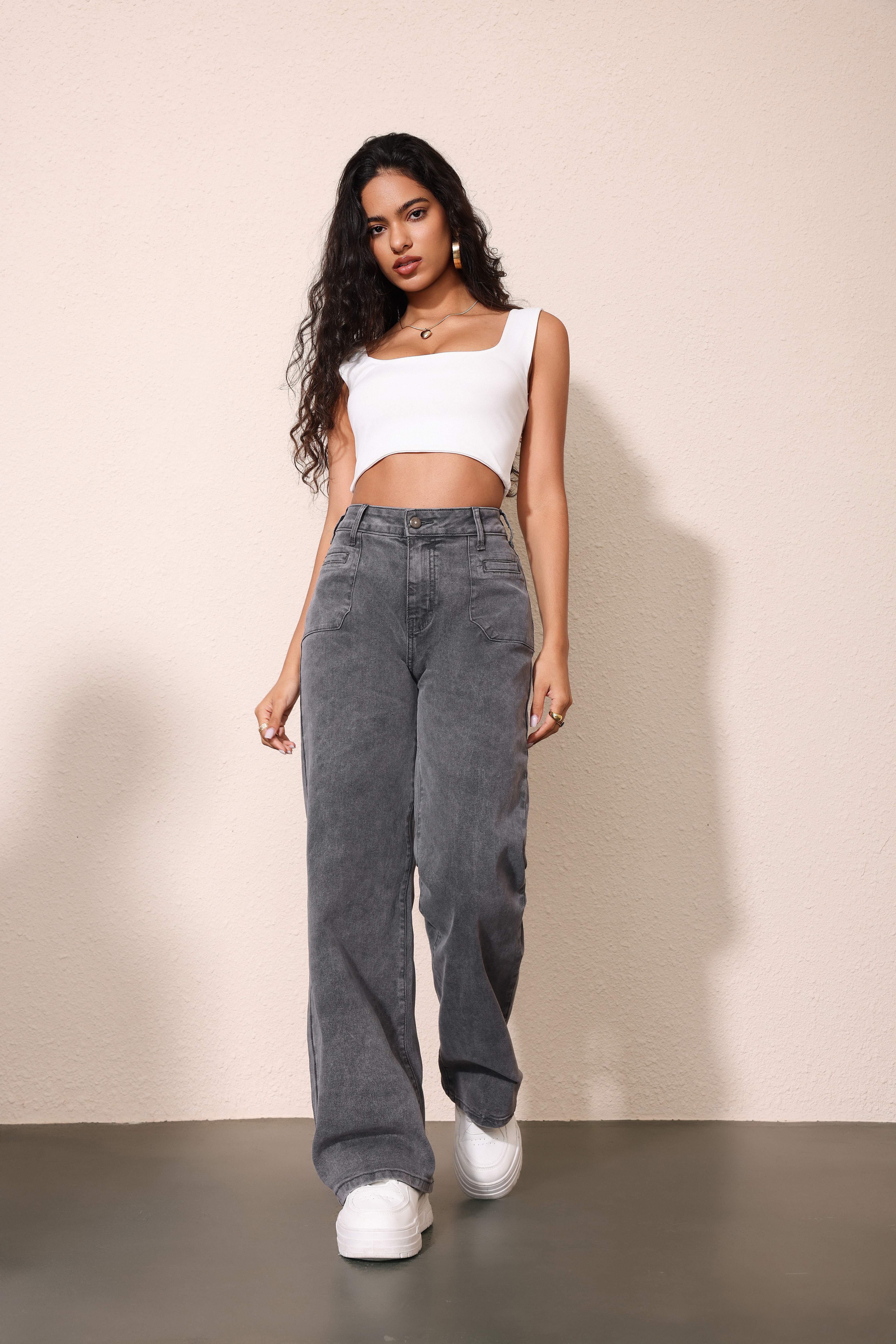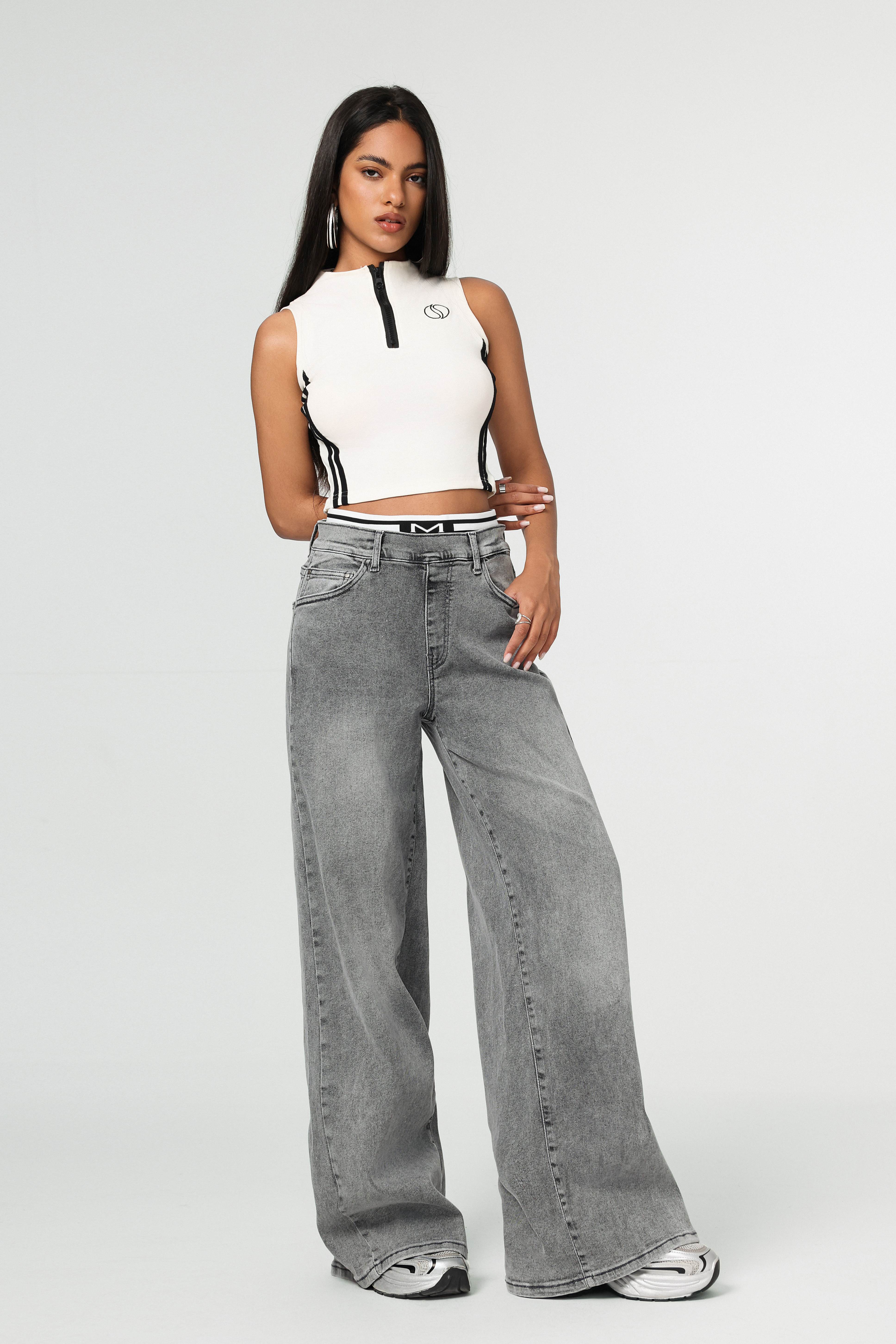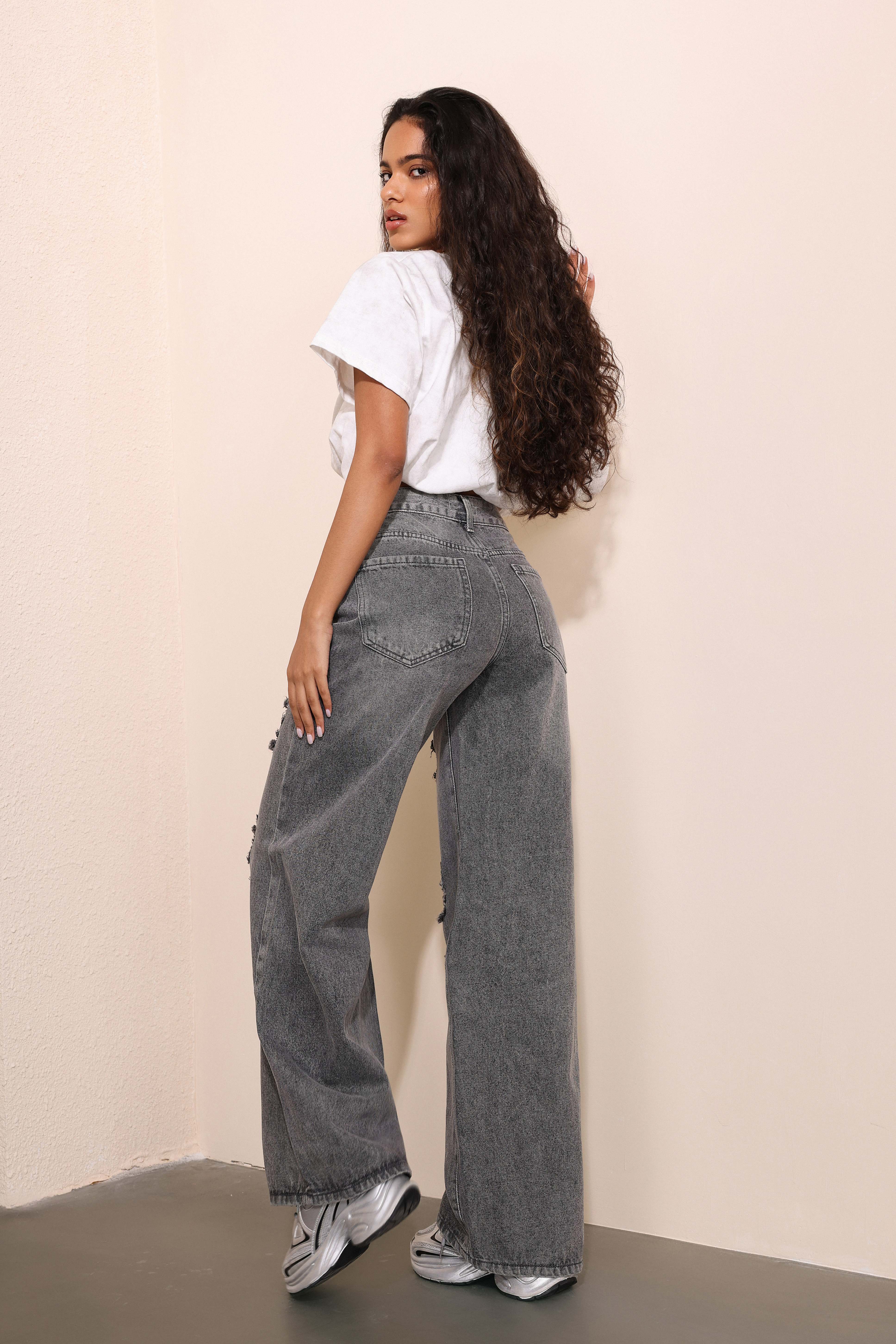 Jeans Anchos Gris Fumée Corte Amplio y Fashion