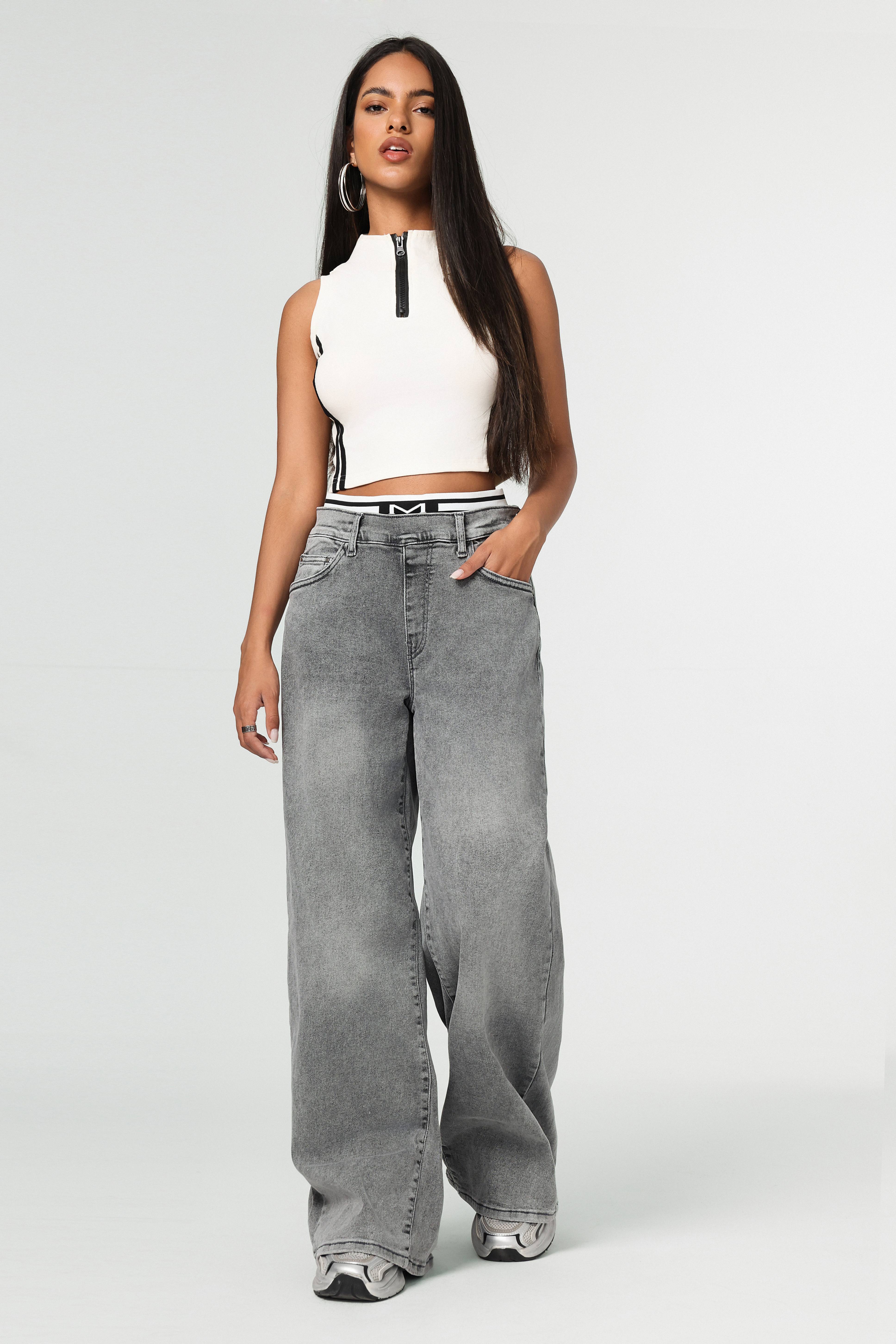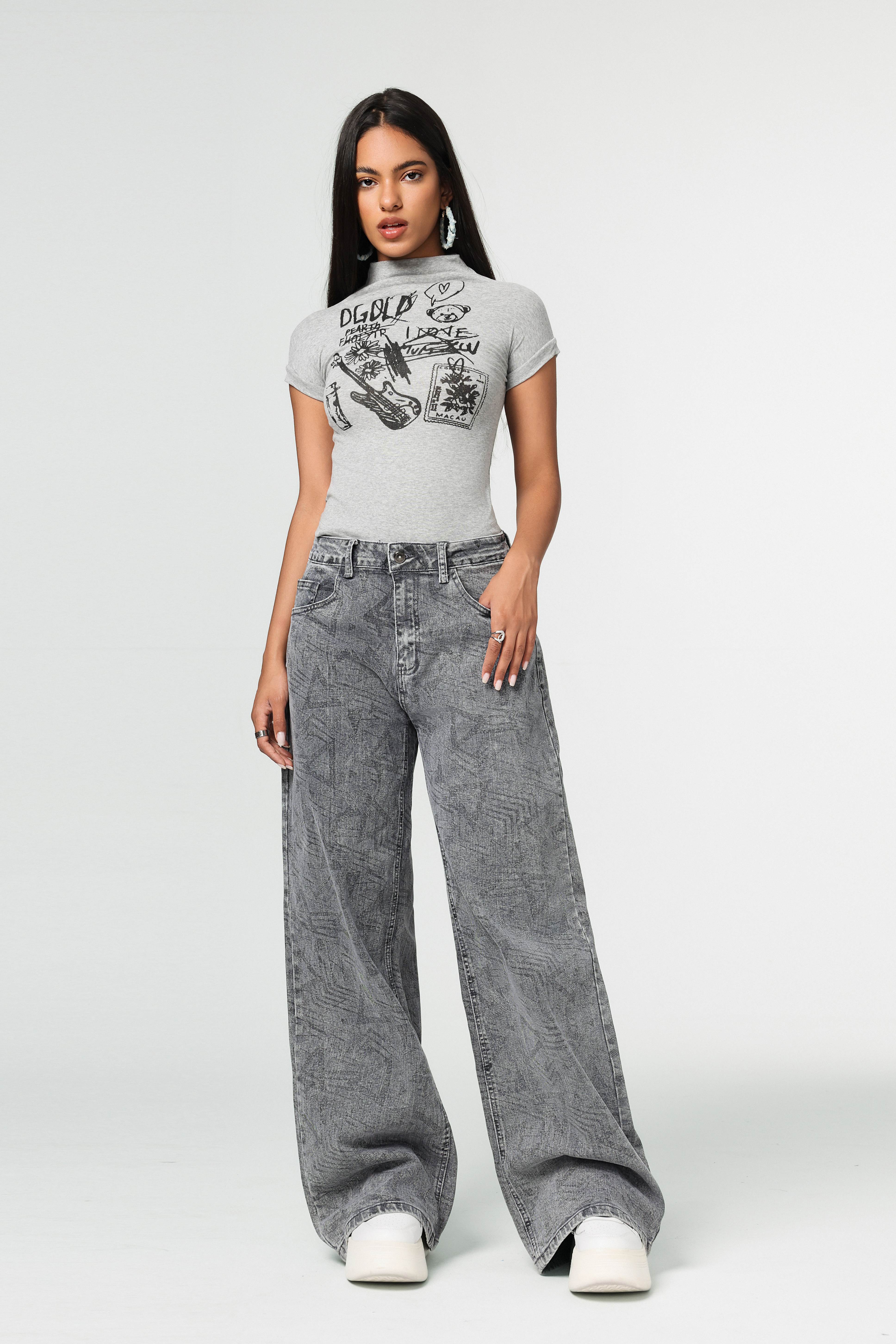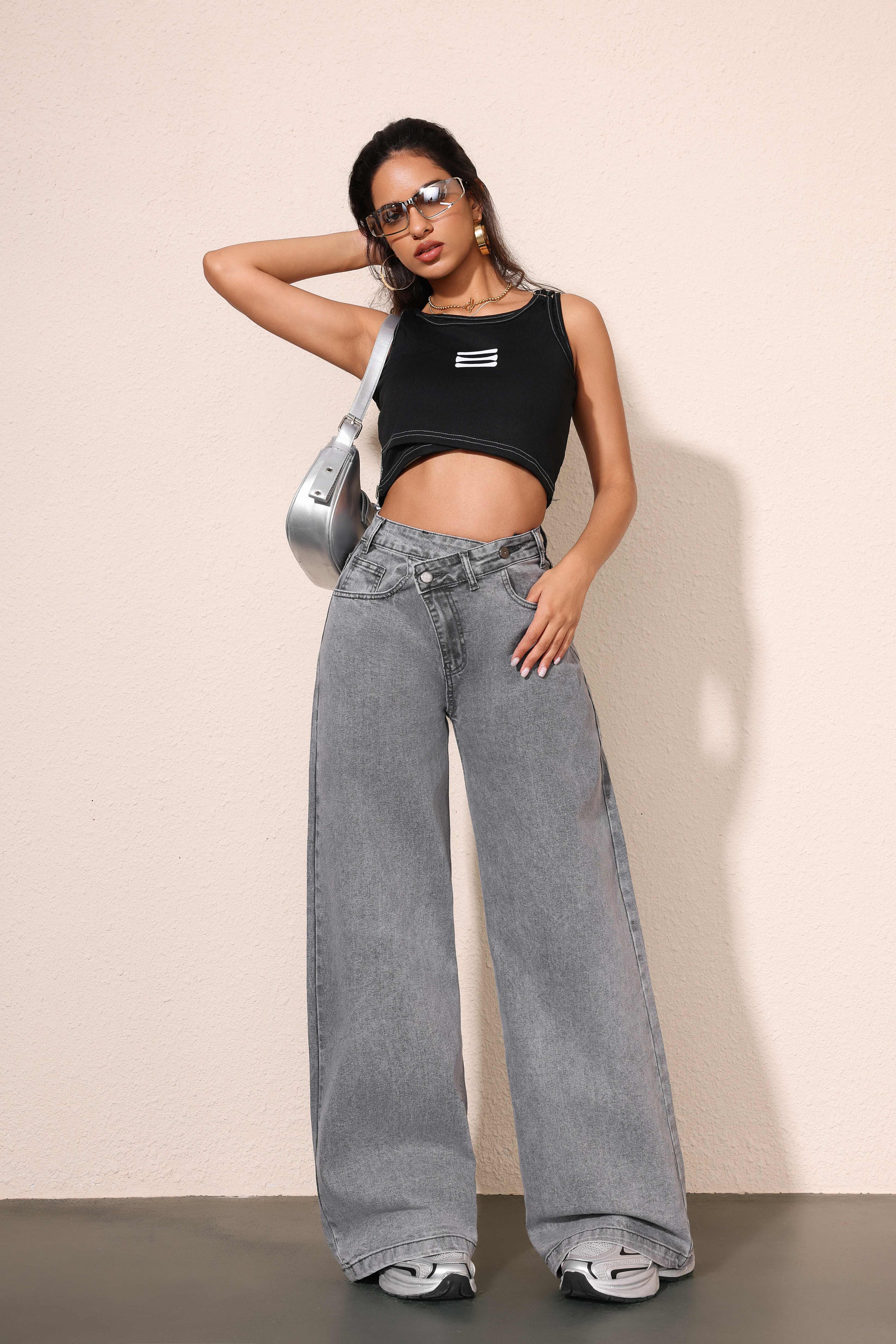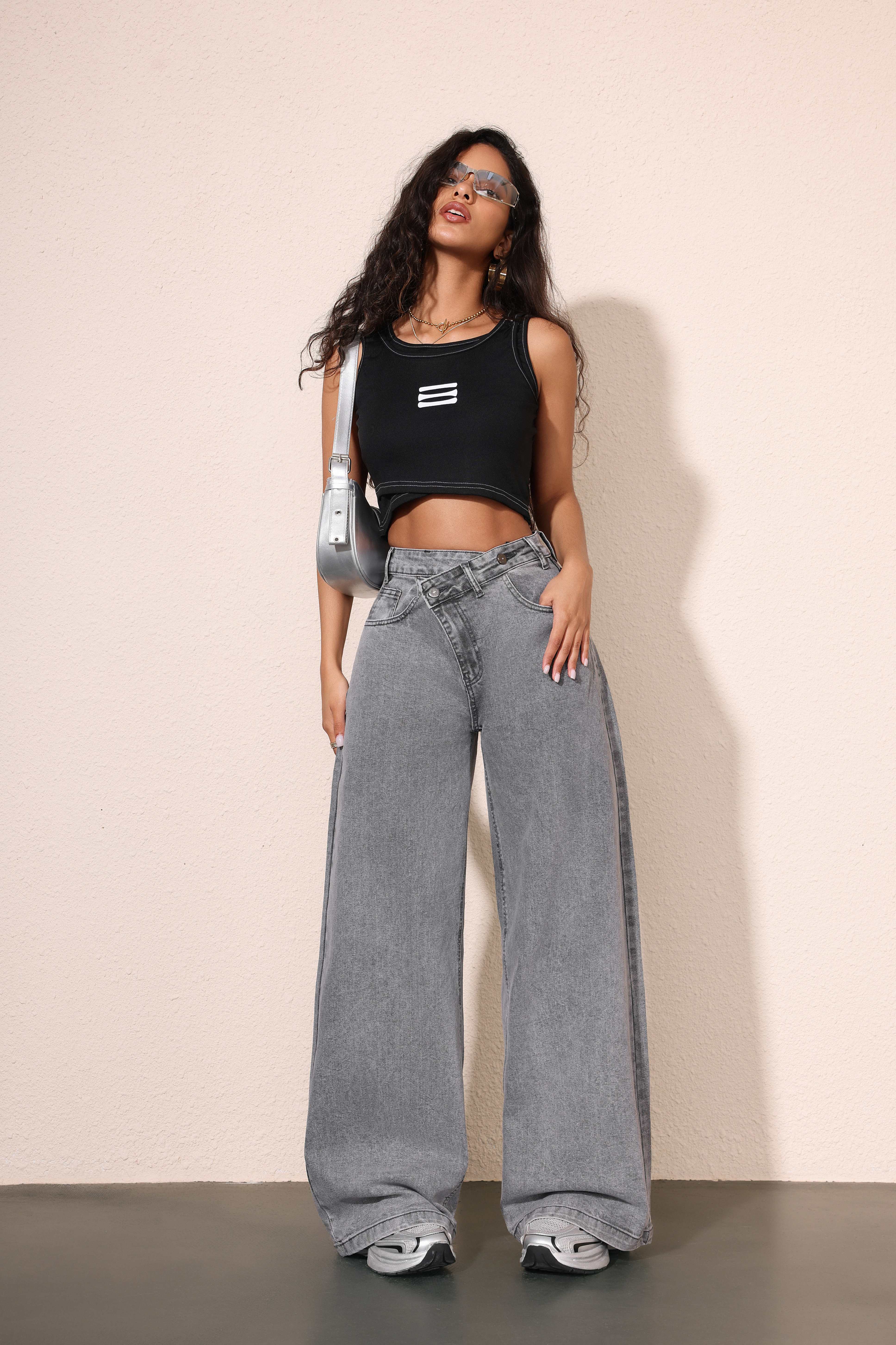 Jeans Anchos Gris Fumée Corte Amplio y Fashion