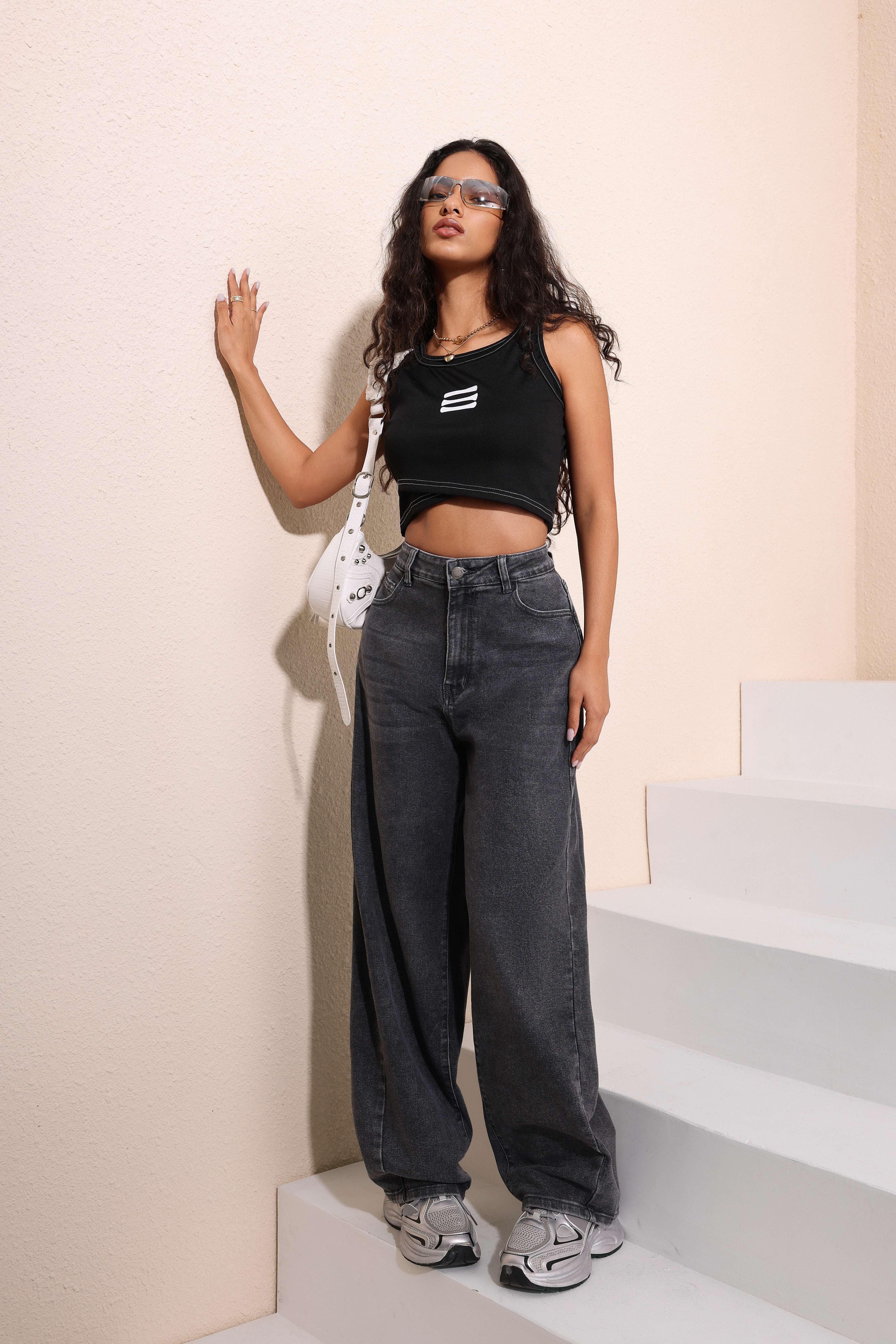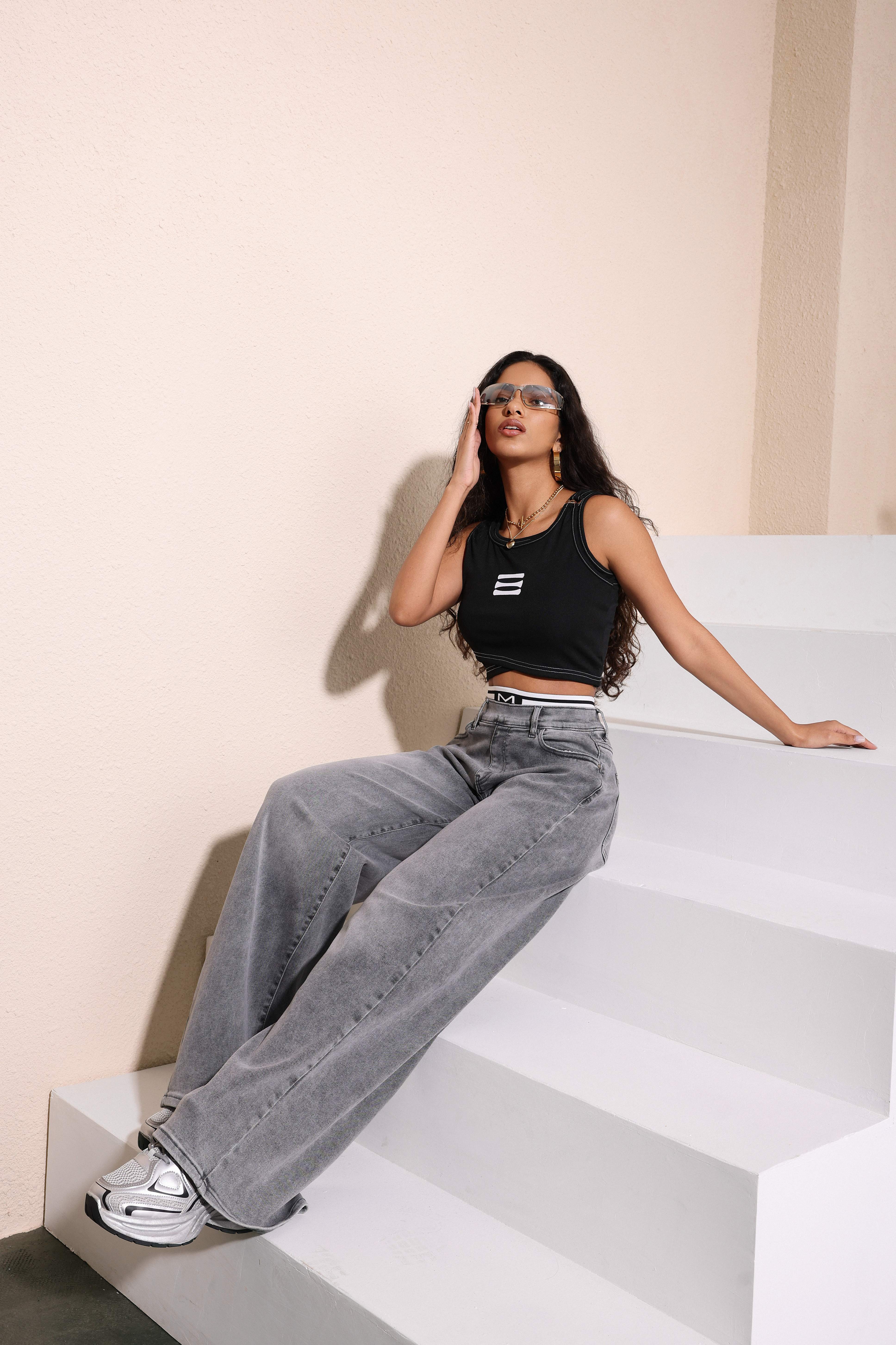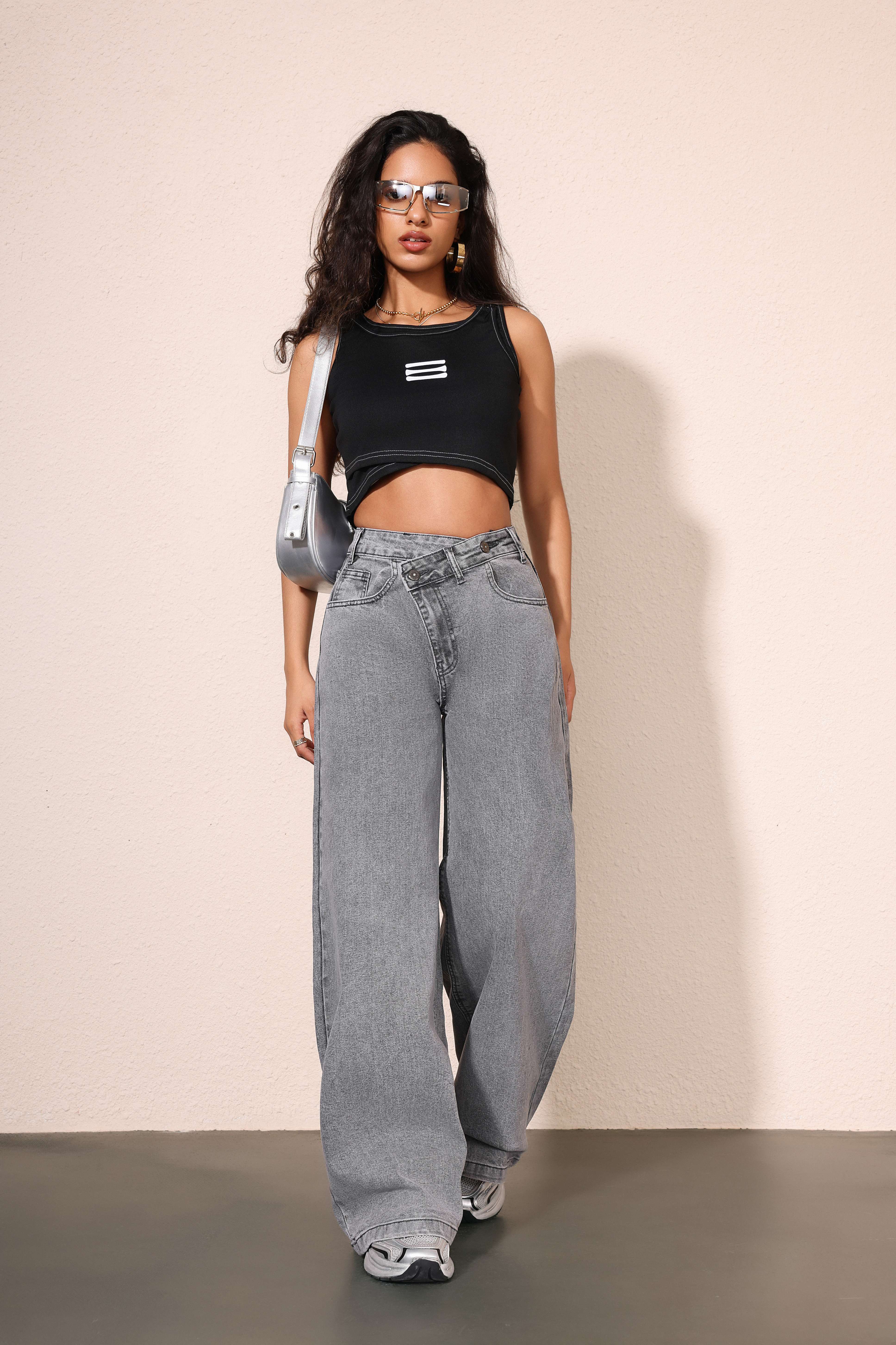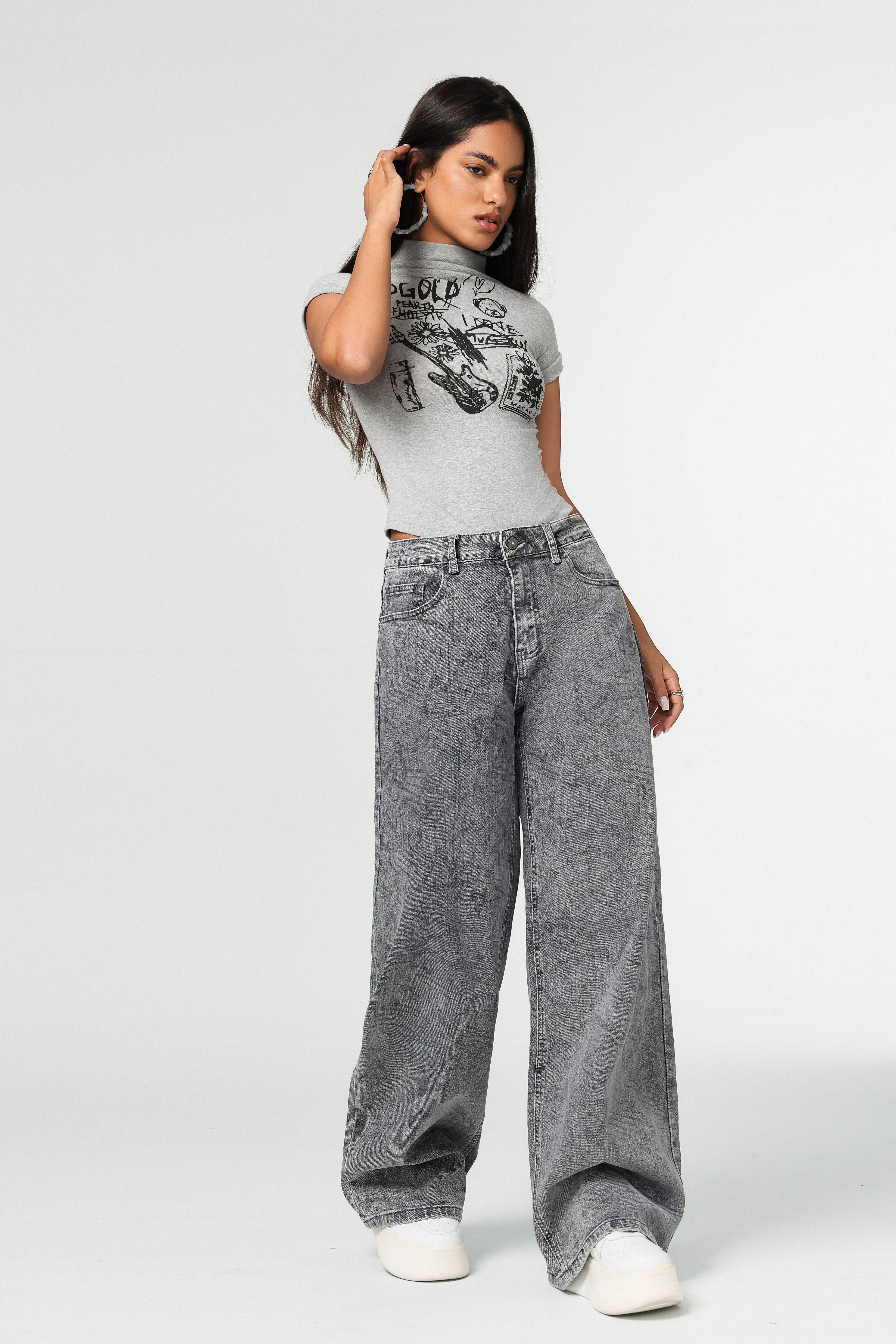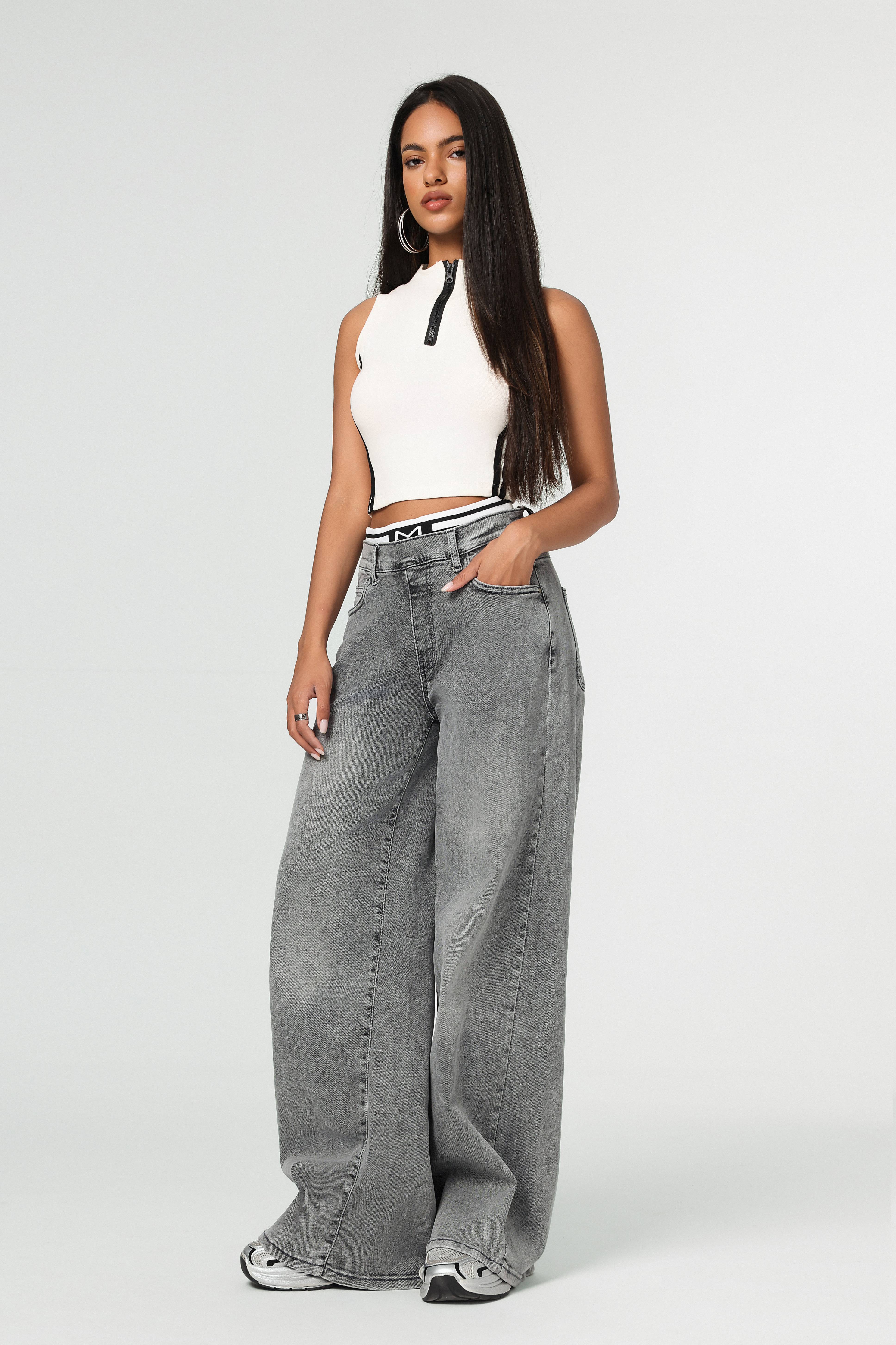 Jeans Anchos Gris Fumée Corte Amplio y Fashion