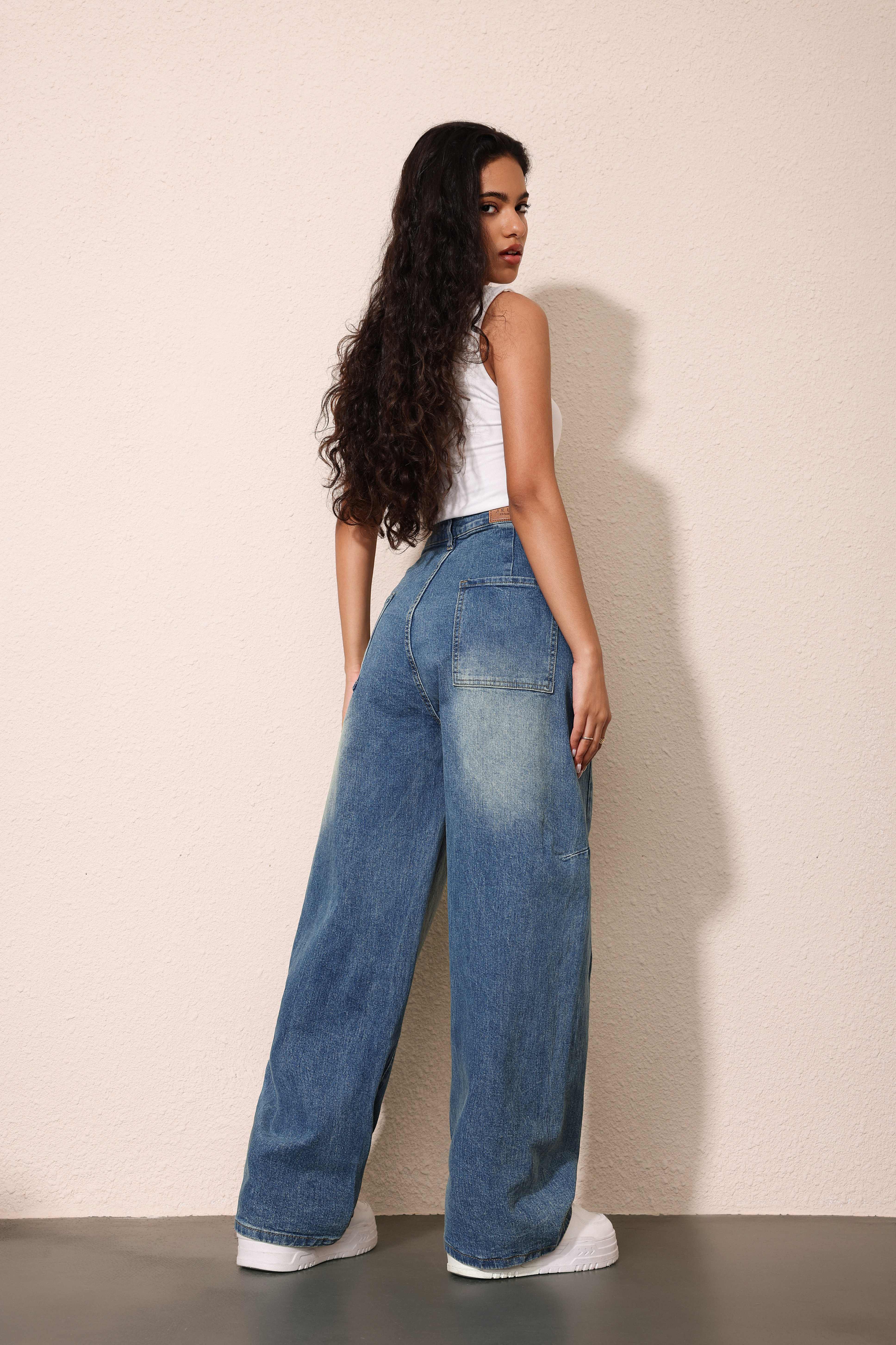 Jeans Anchos Azul Claro Degradado Estilo Fresco y Original