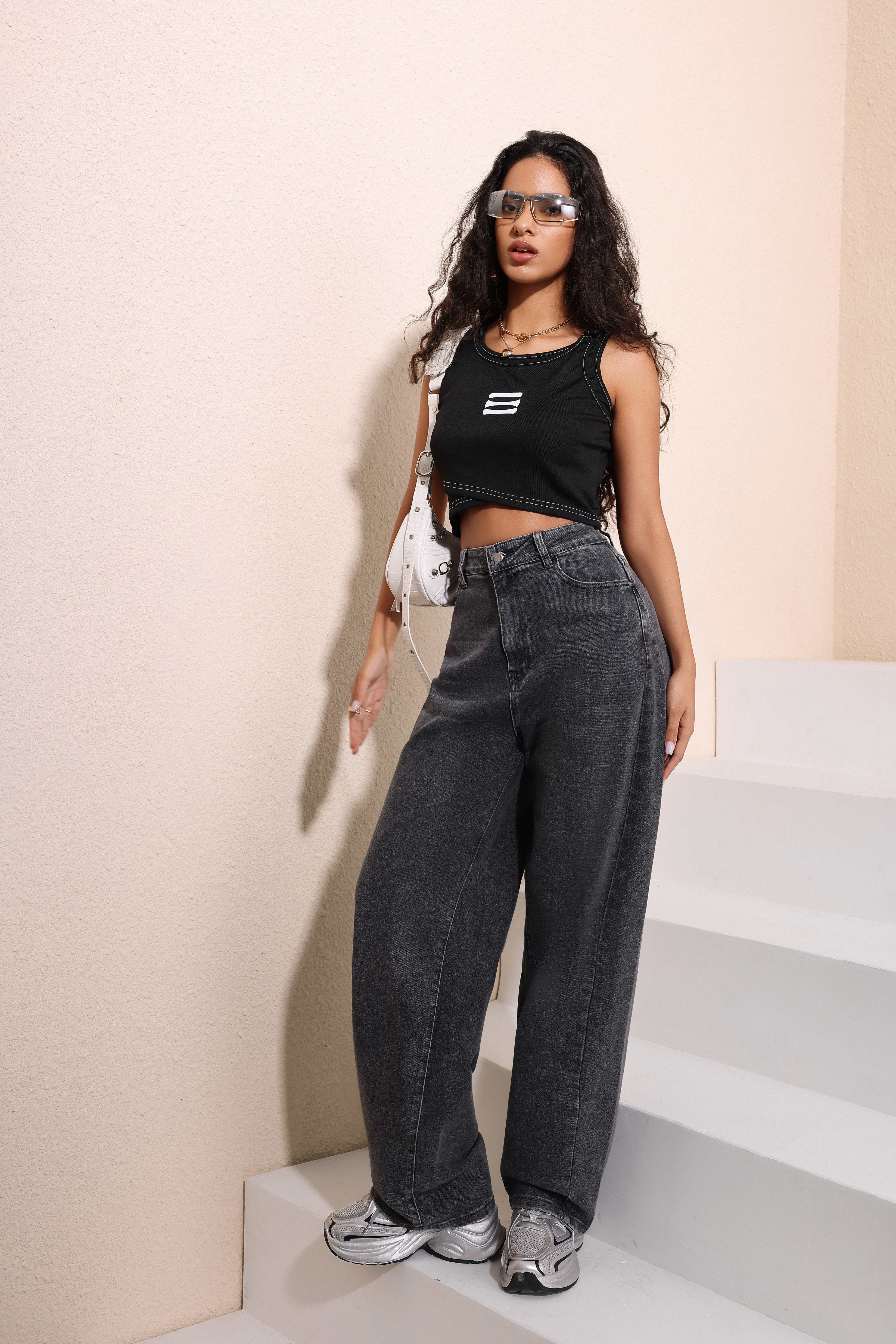 Jeans Amplios de Color Gris Oscuro Corte Relajado y Estilo