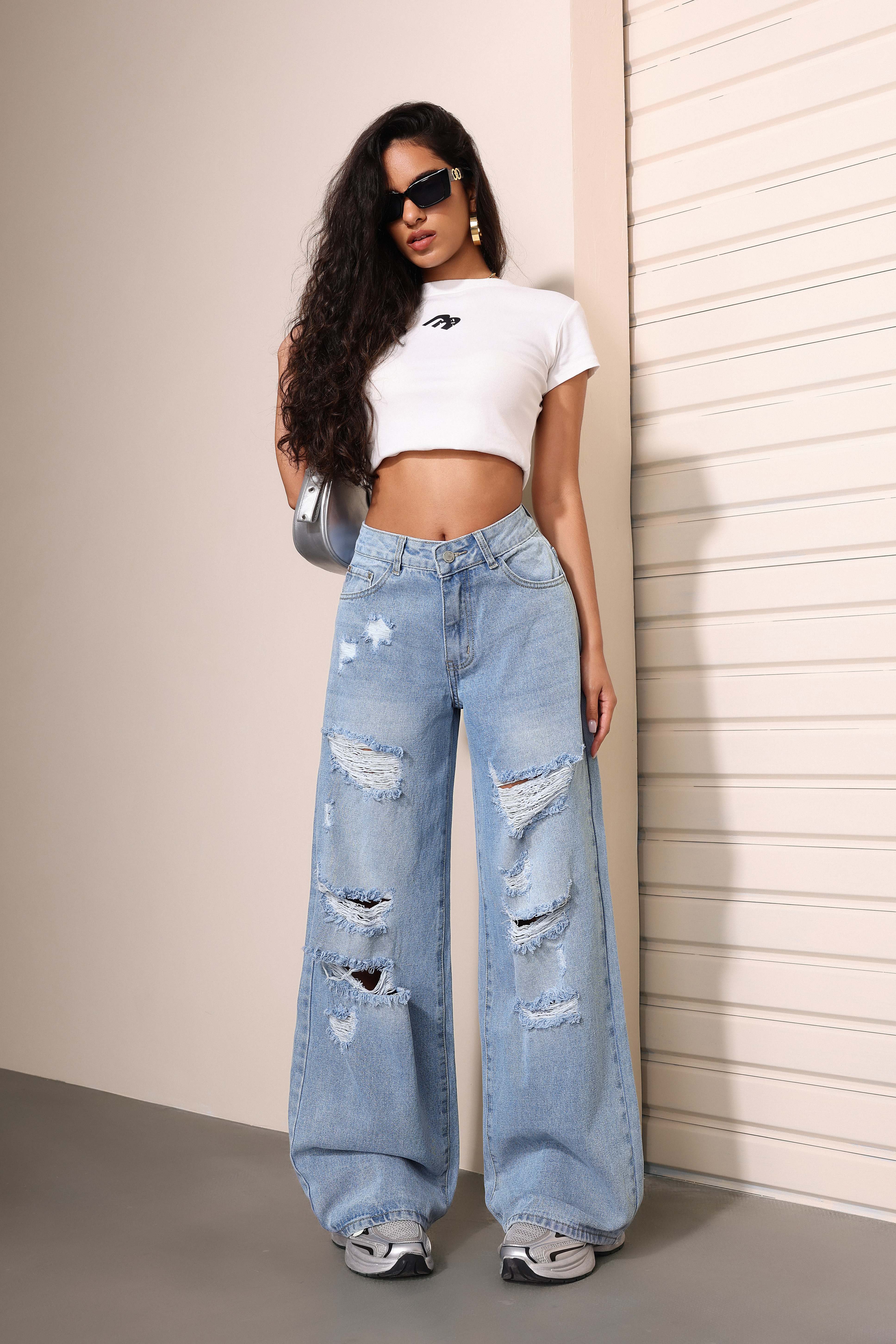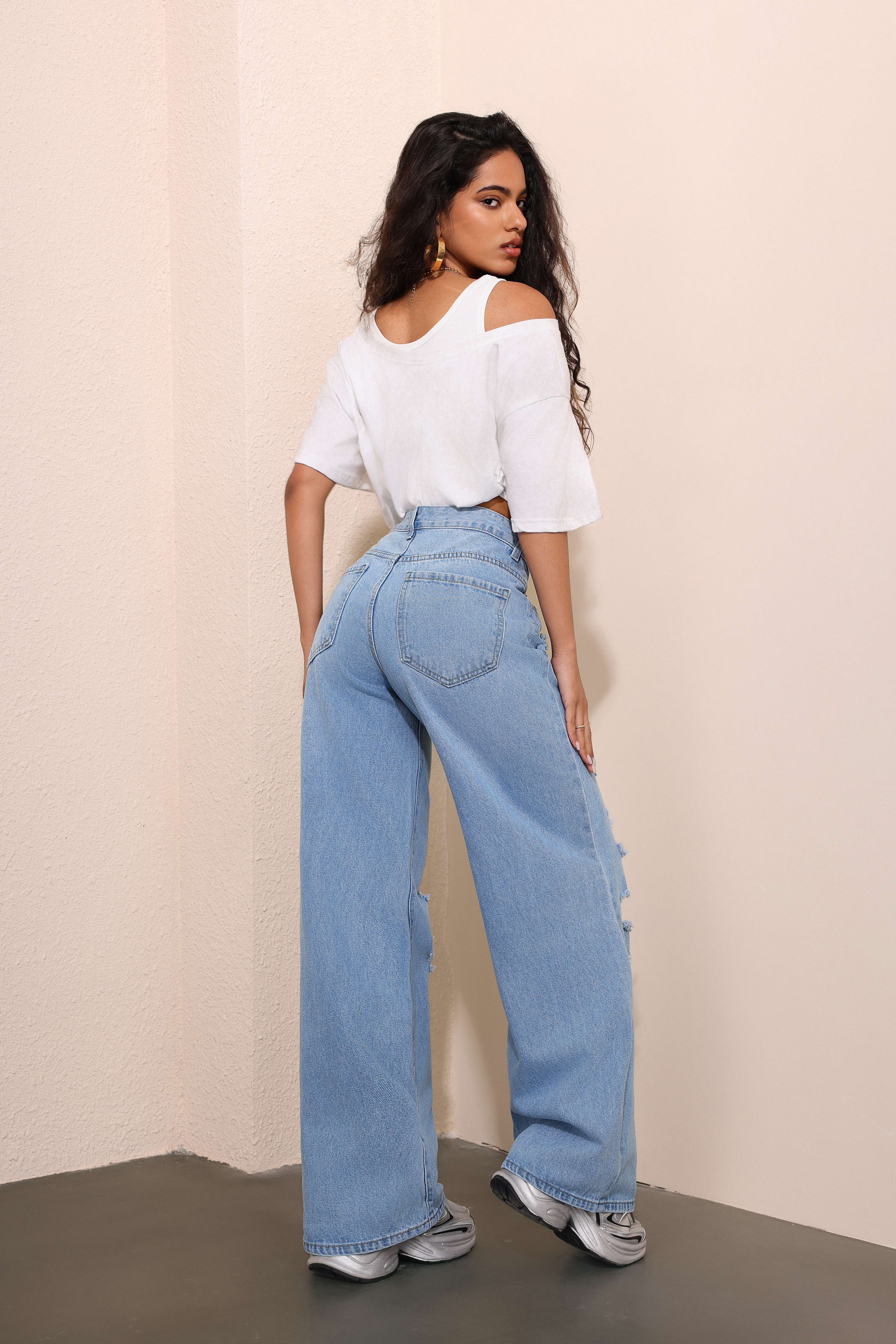 Jeans Baggy Azul Claro con Desgastes Masivos Perfectos para