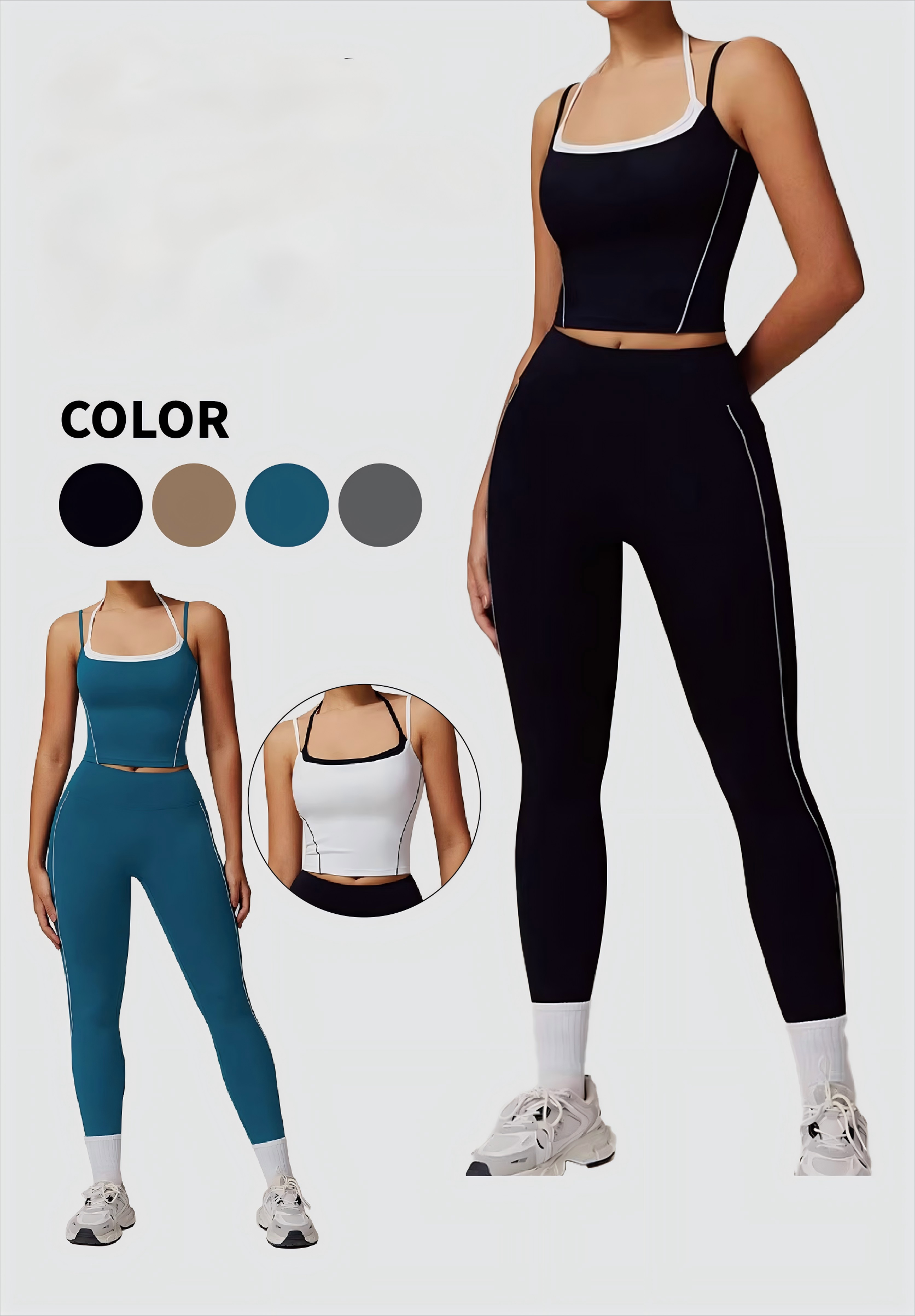 Mono de yoga para mujer con leggings, elástico, de secado rápido, con cordón ajustable, para fitness y tenis.