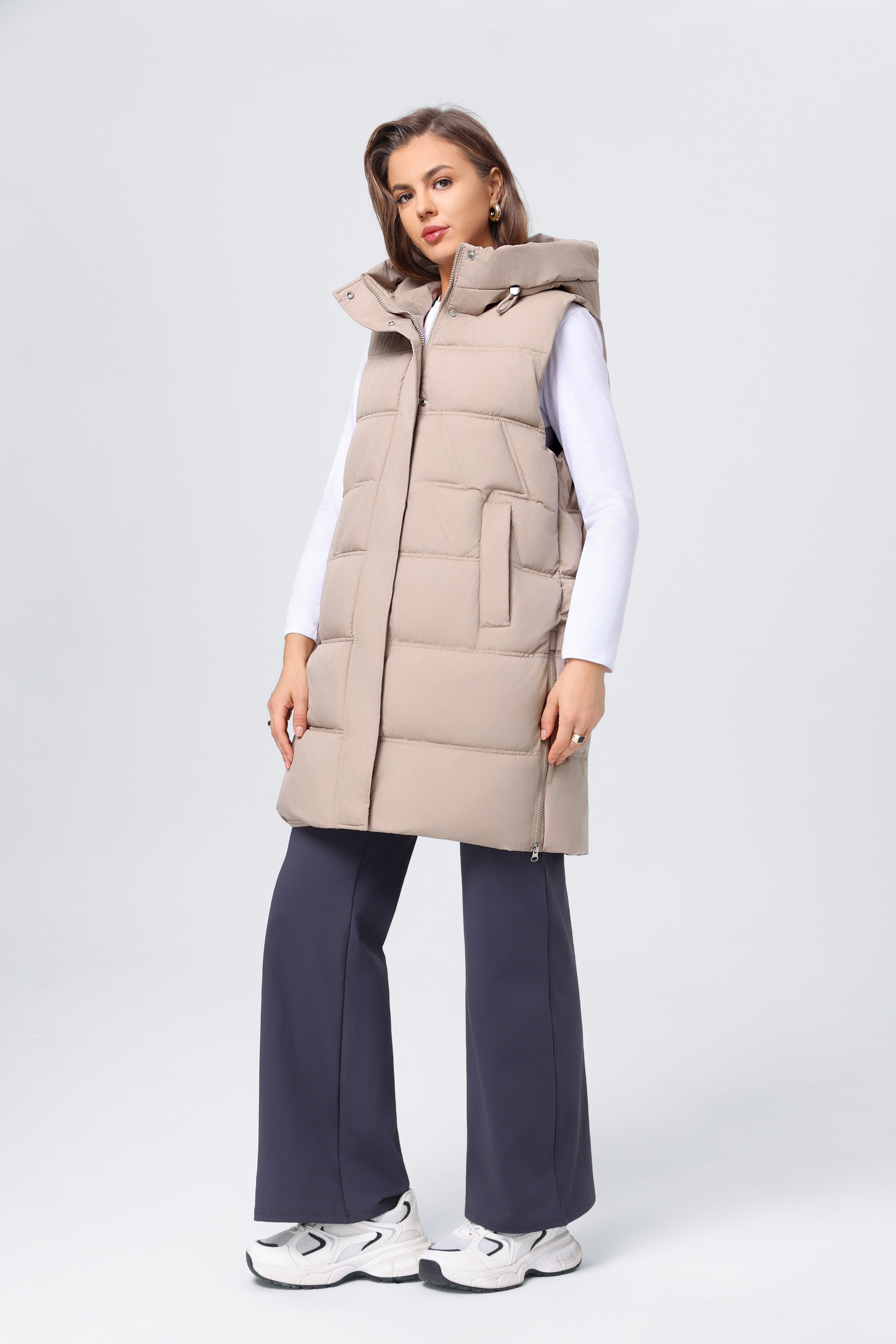Chaleco de algodón sin mangas con cuello alto y capucha de estilo nuevo para otoño e invierno