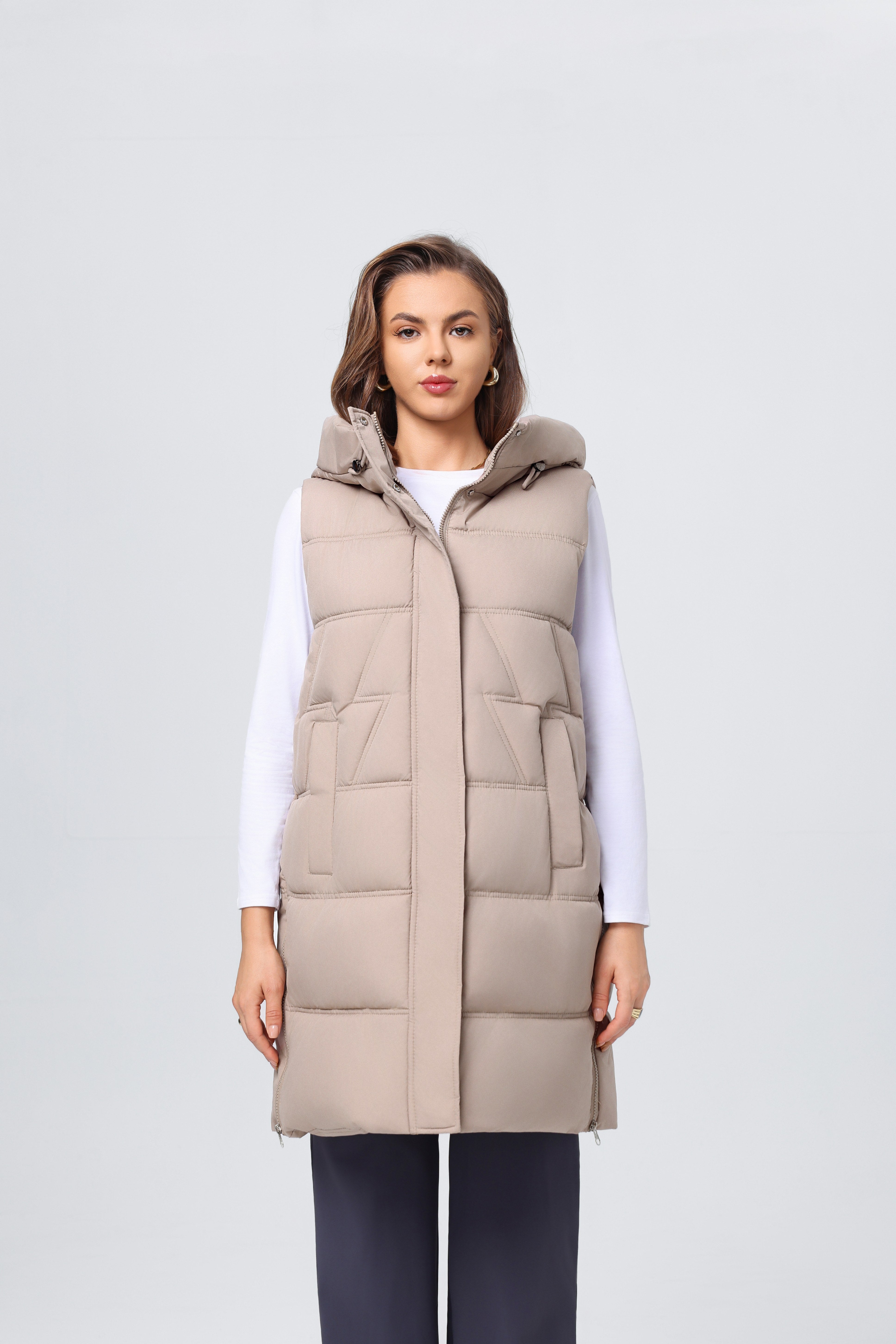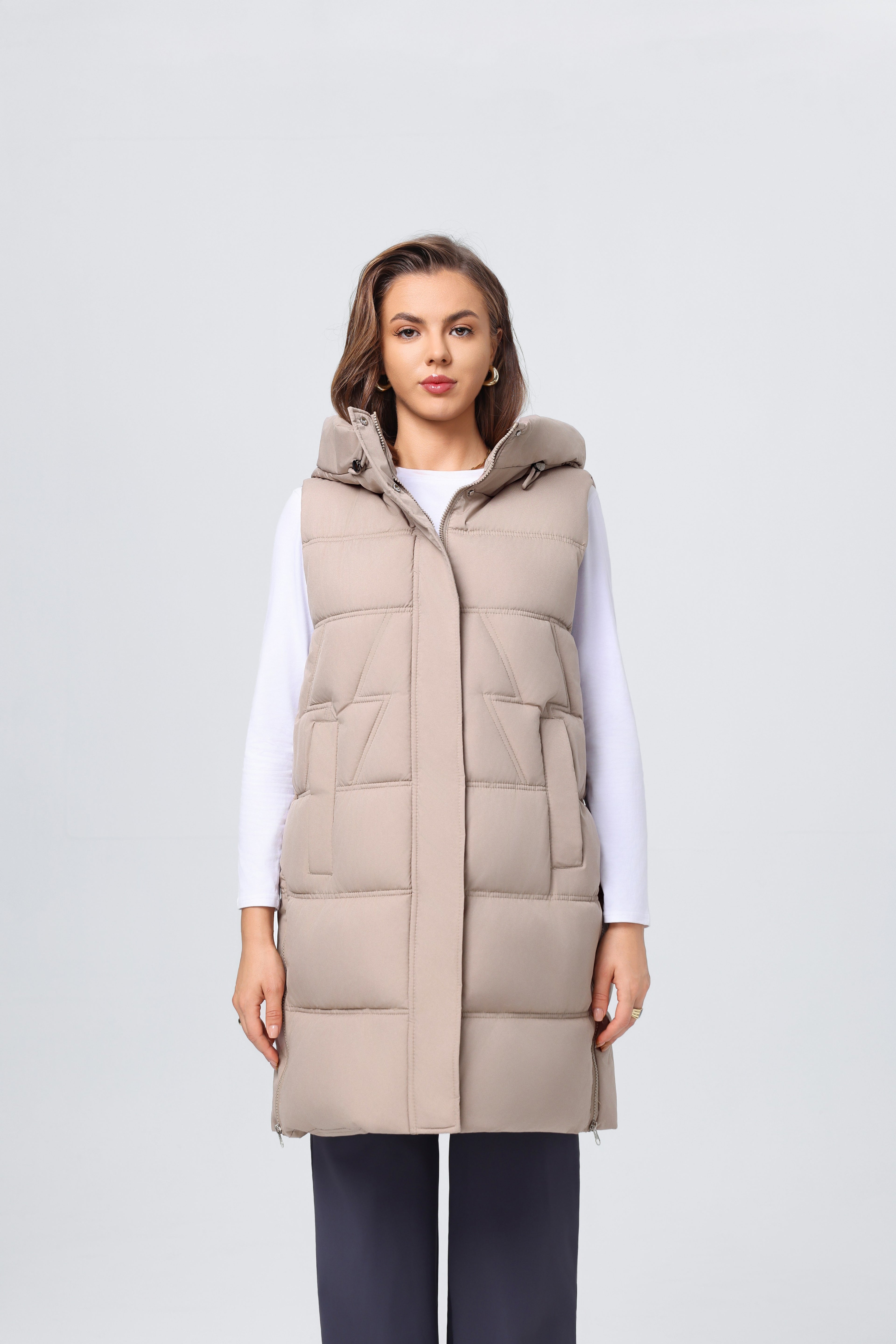 - Chaleco de algodón sin mangas, ideal para estaciones frías.