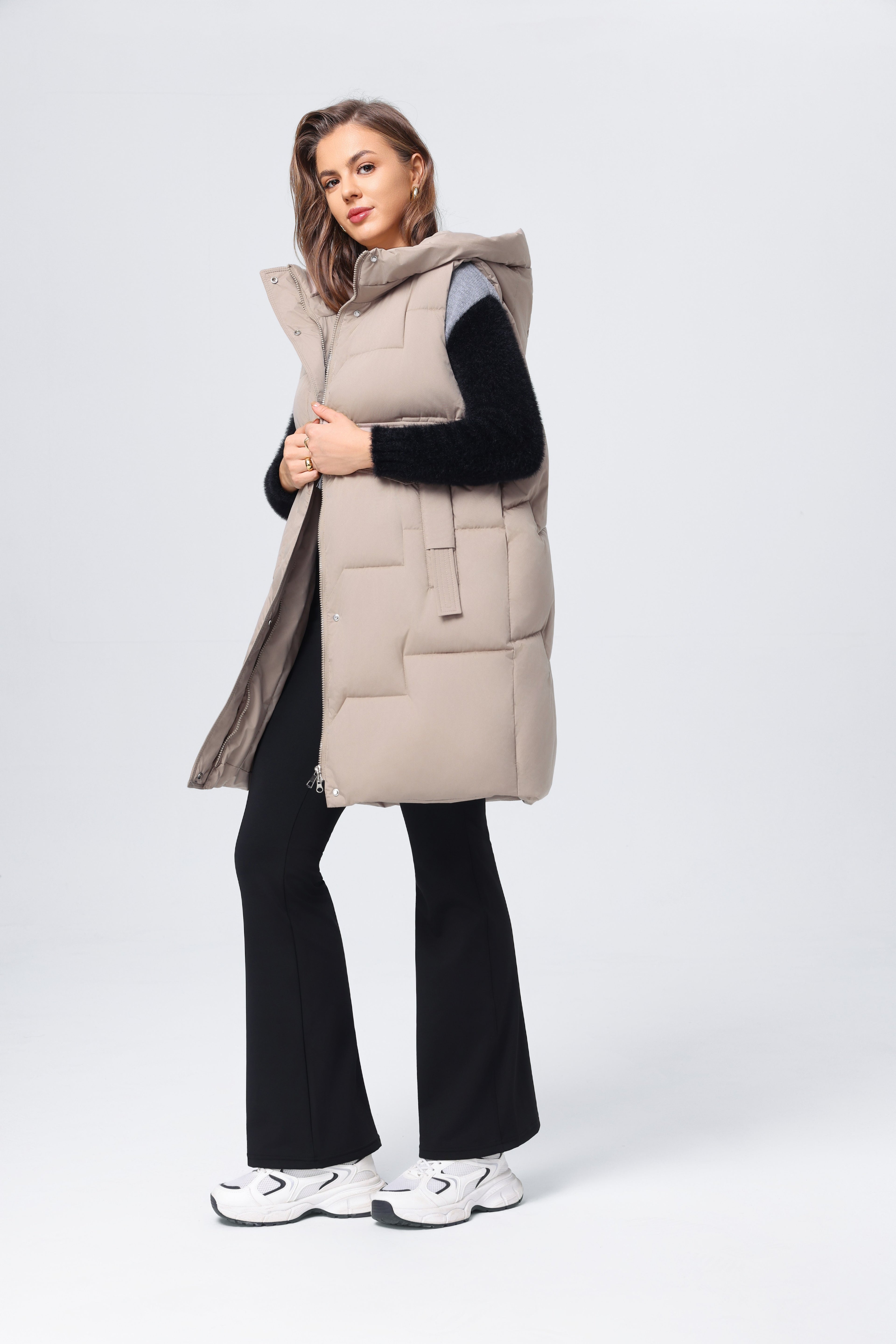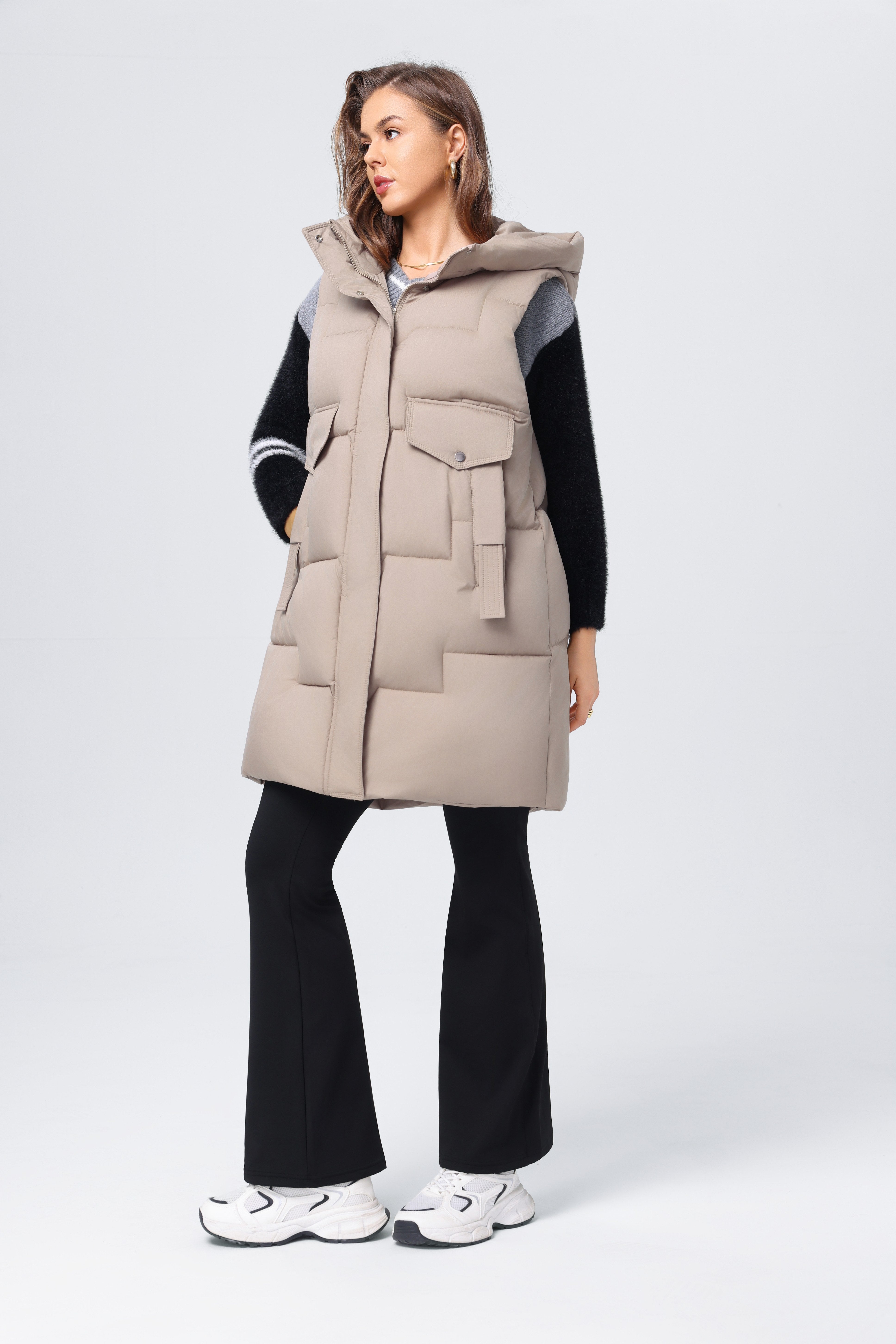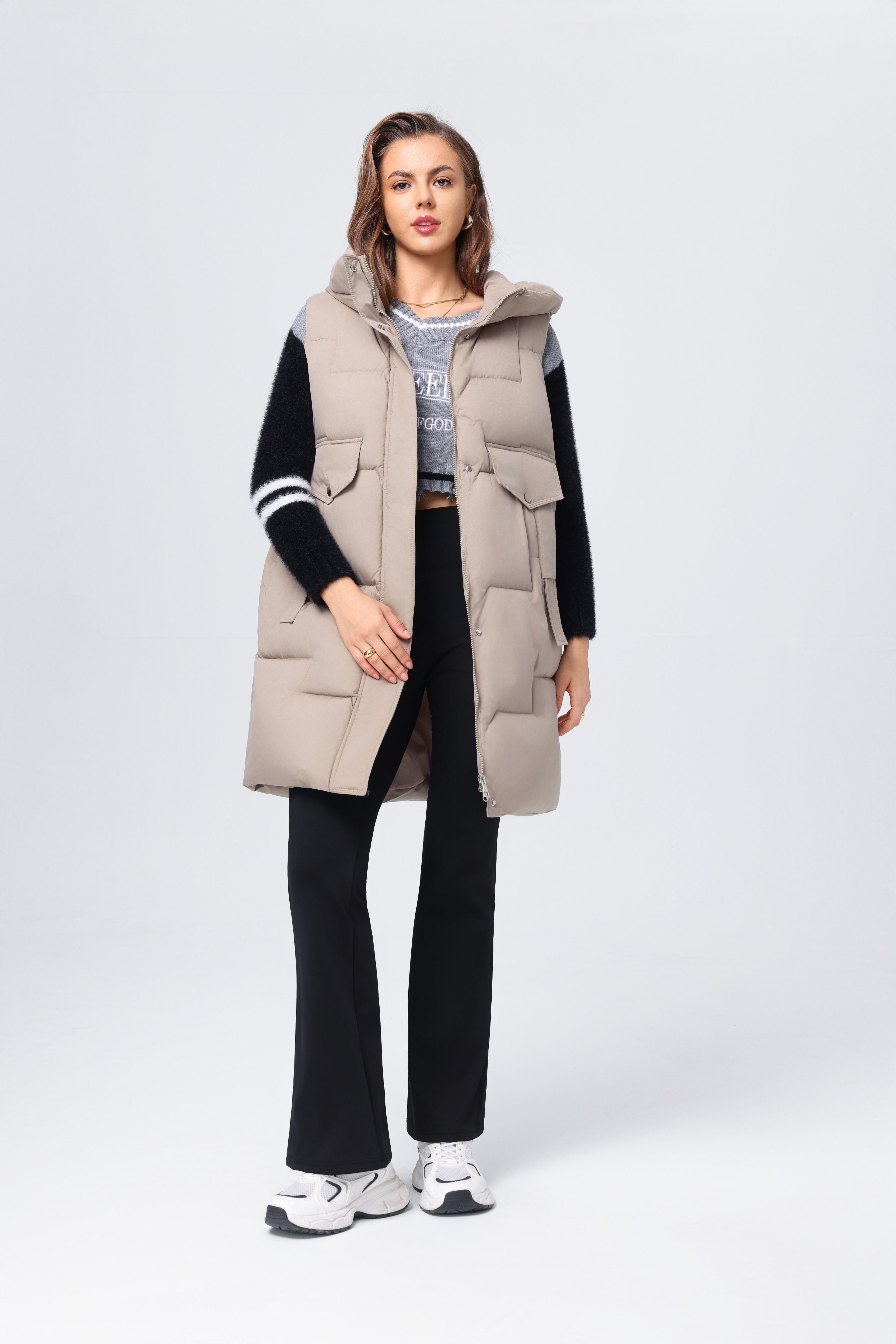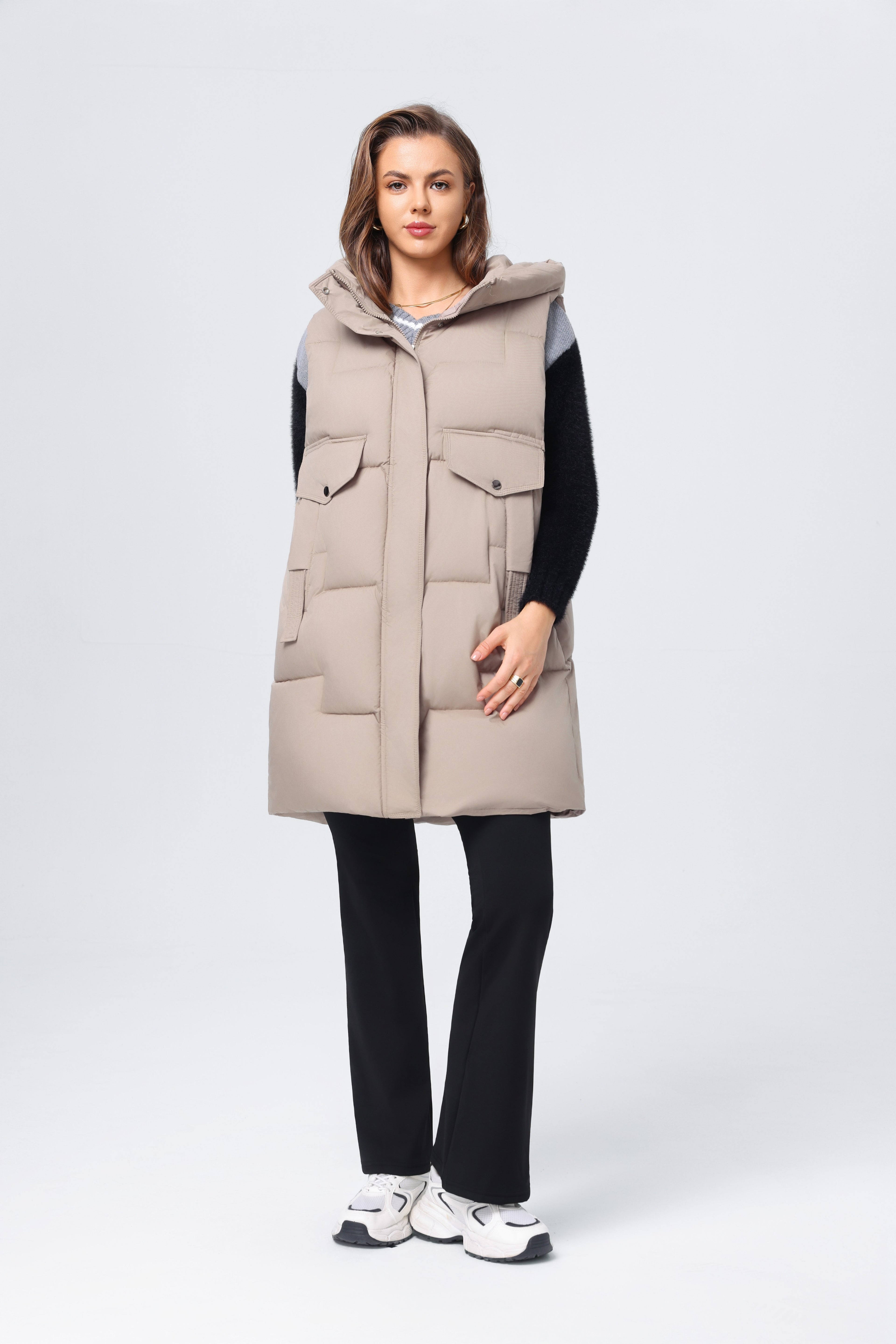 Chaleco informal de algodón con plumón de longitud media para mujer, chaqueta holgada y ajustada para otoño e invierno