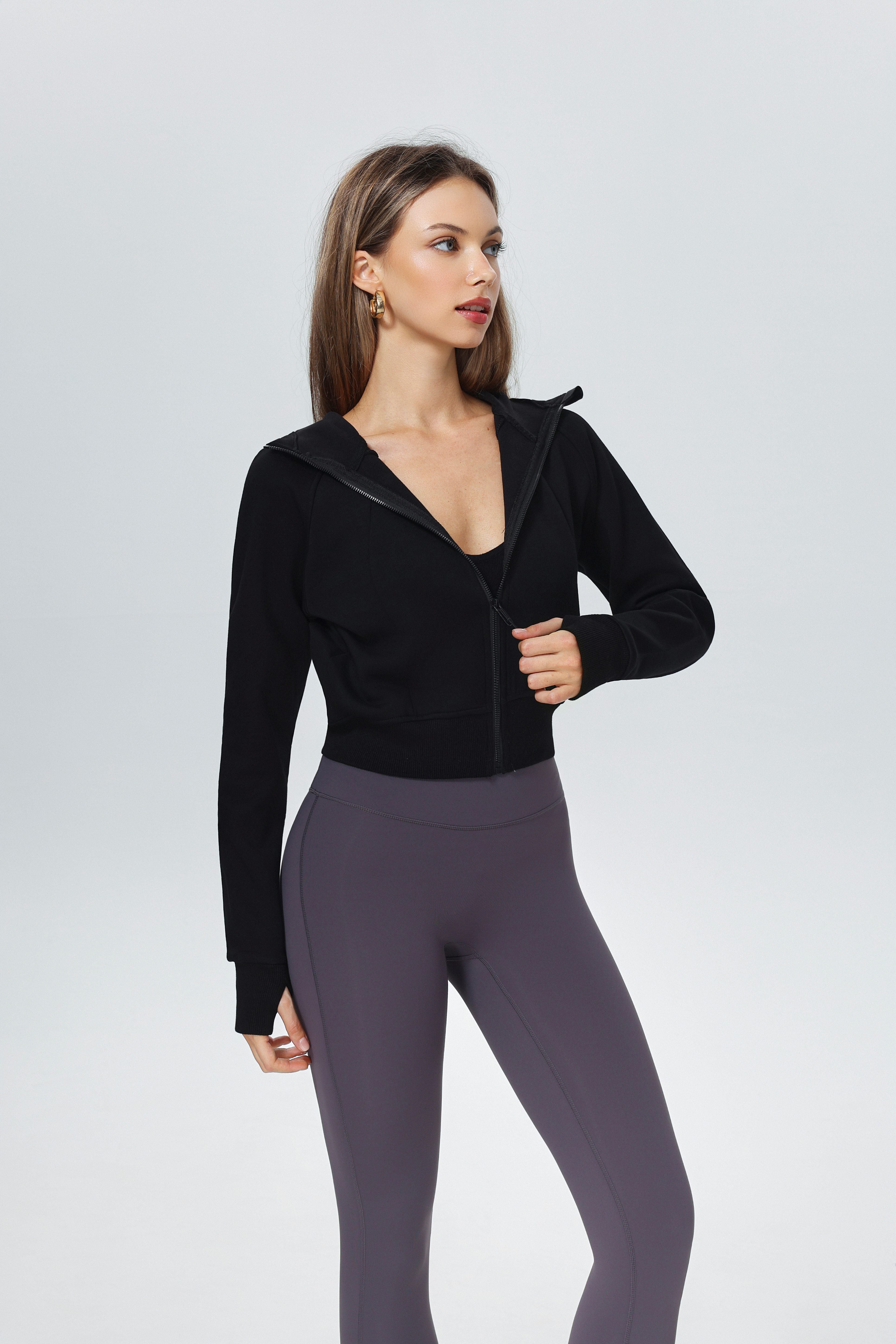 Chaqueta corta con capucha y cremallera para mujer con protección solar
