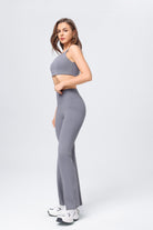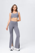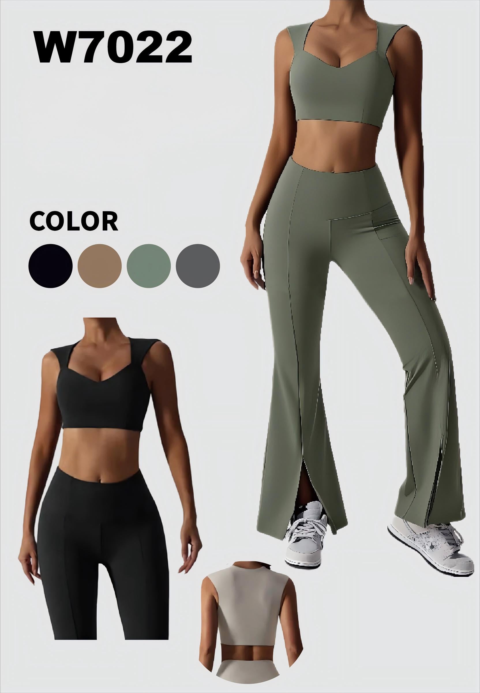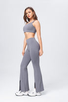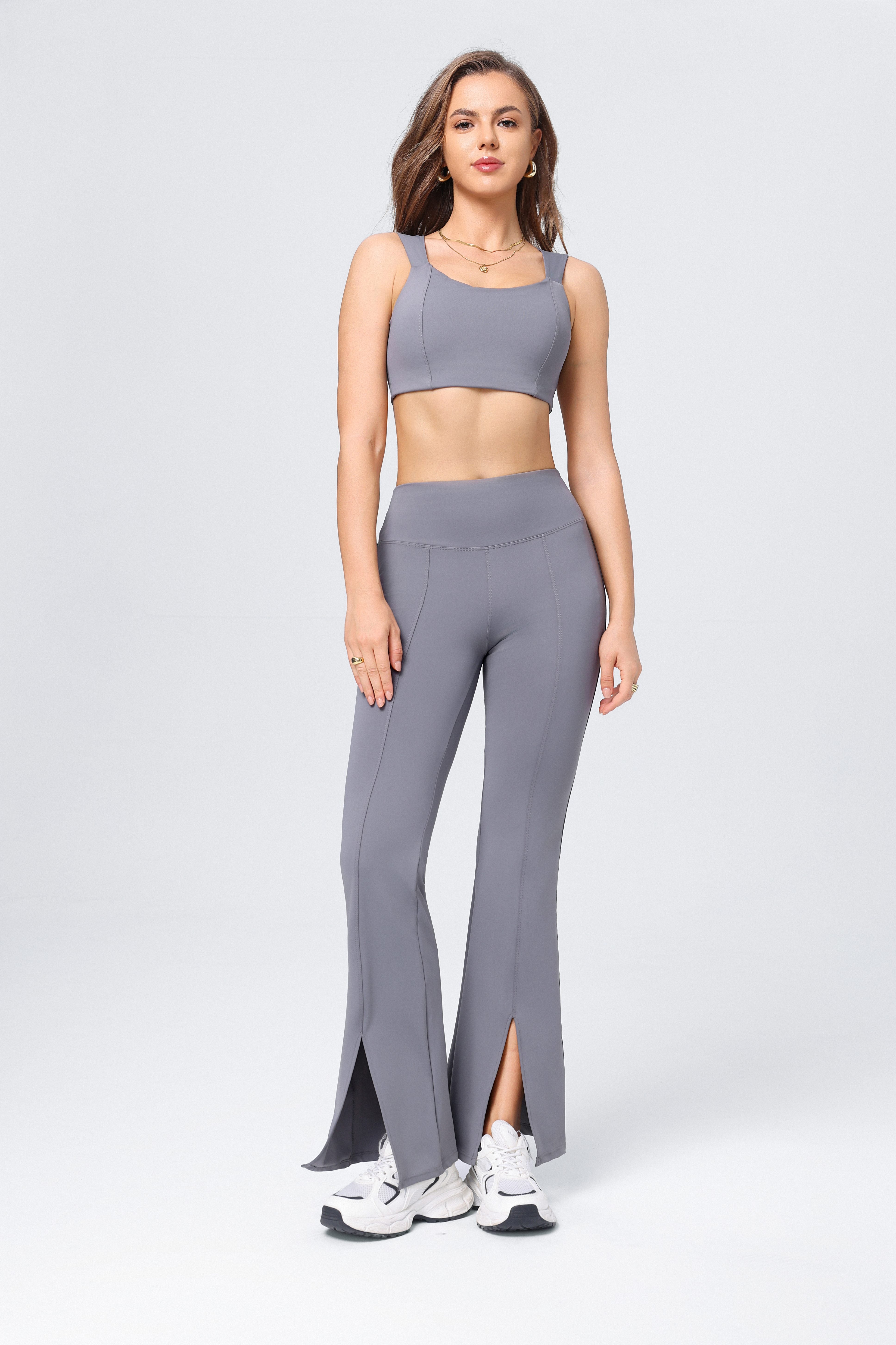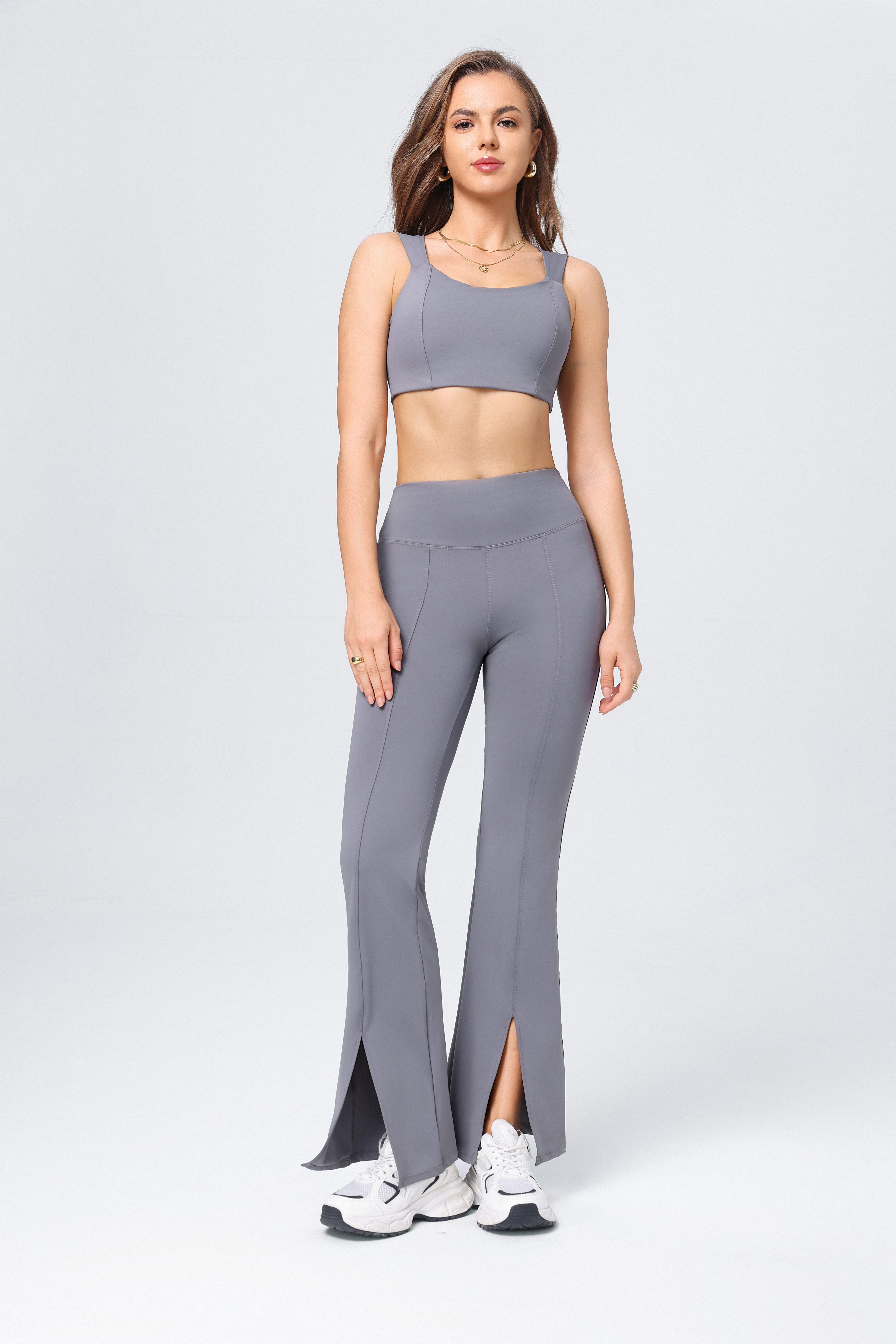 Conjunto de chaleco de yoga de cintura alta para mujer, pantalones acampanados divididos con realce de cadera y deportes de yoga