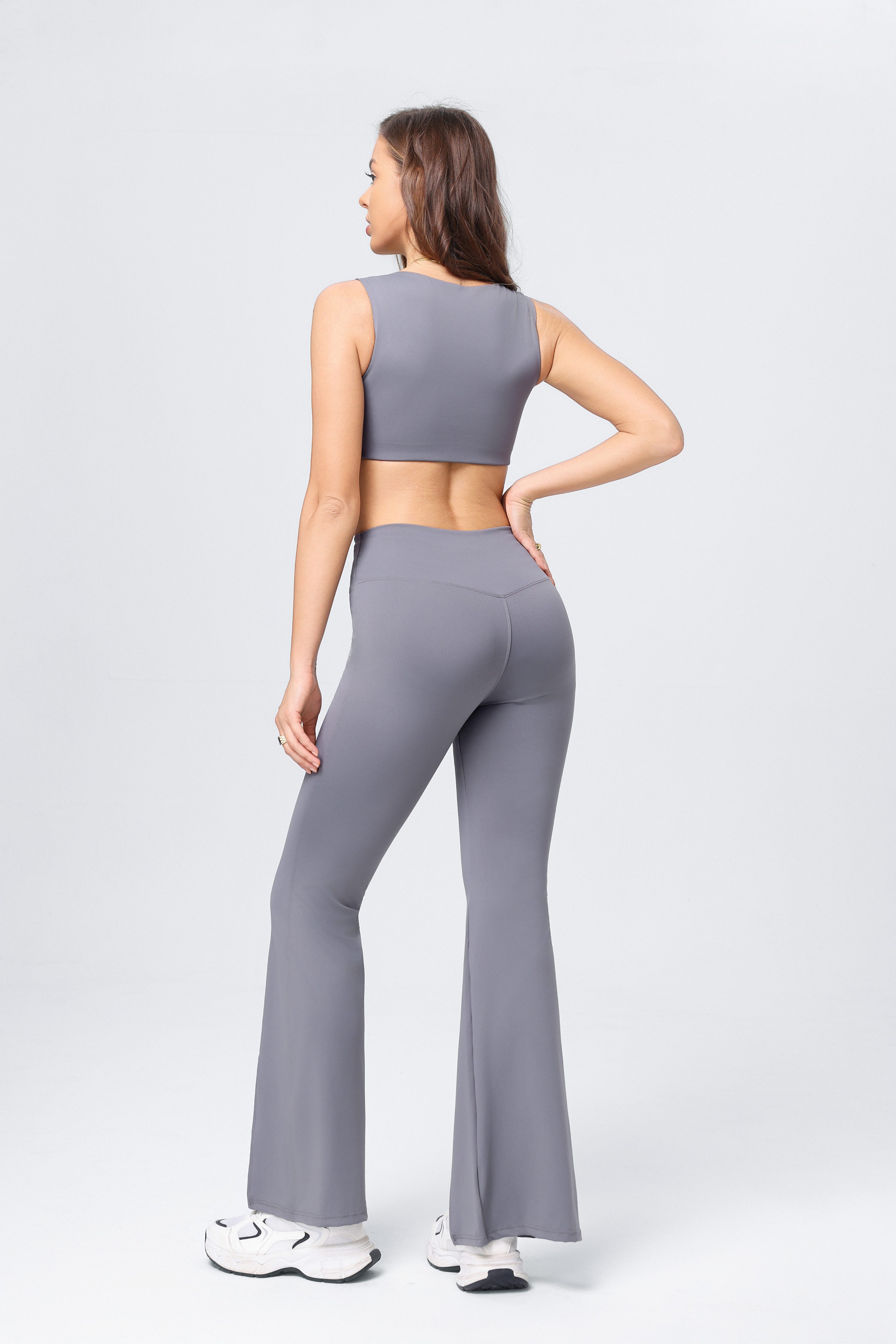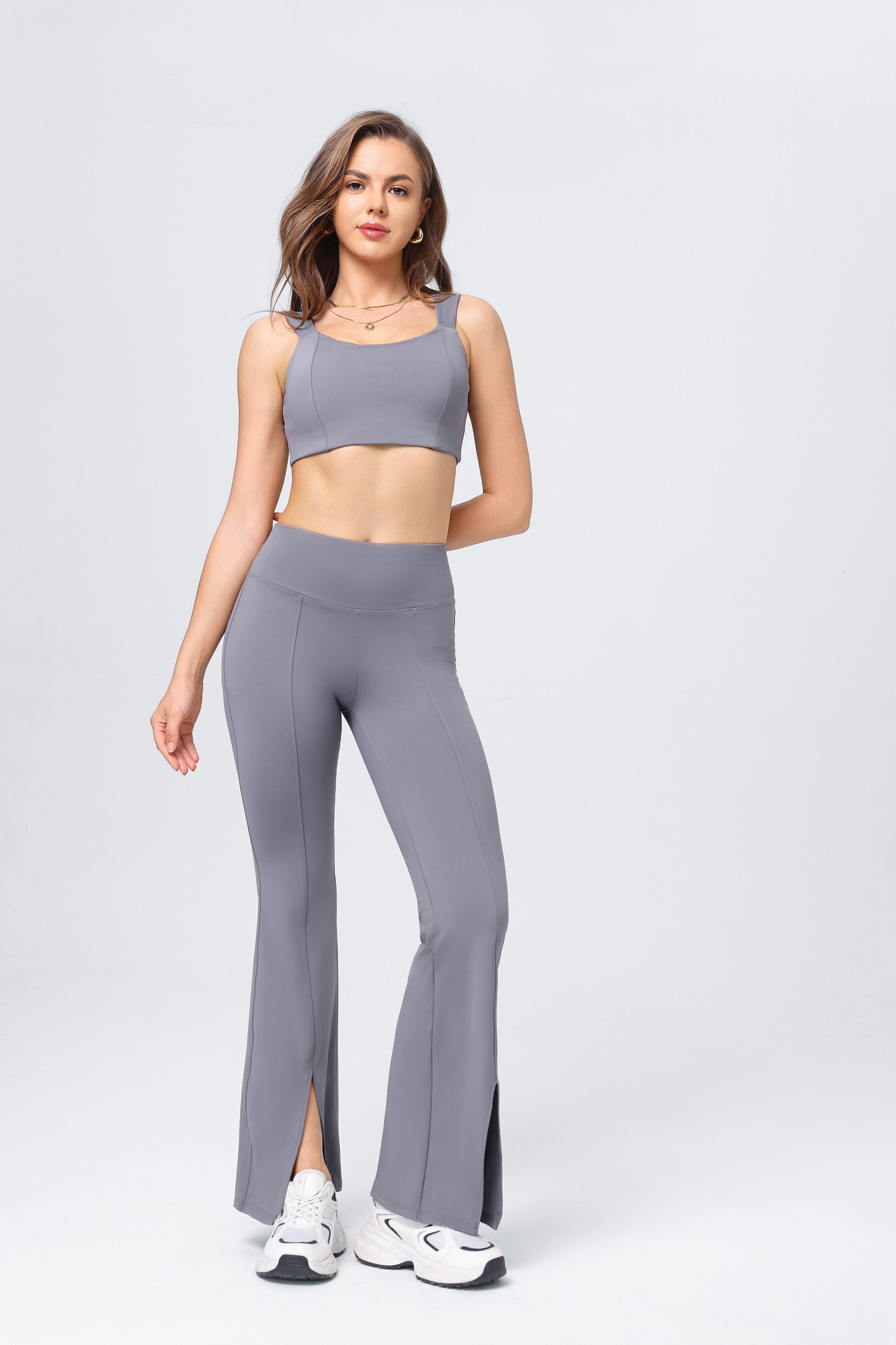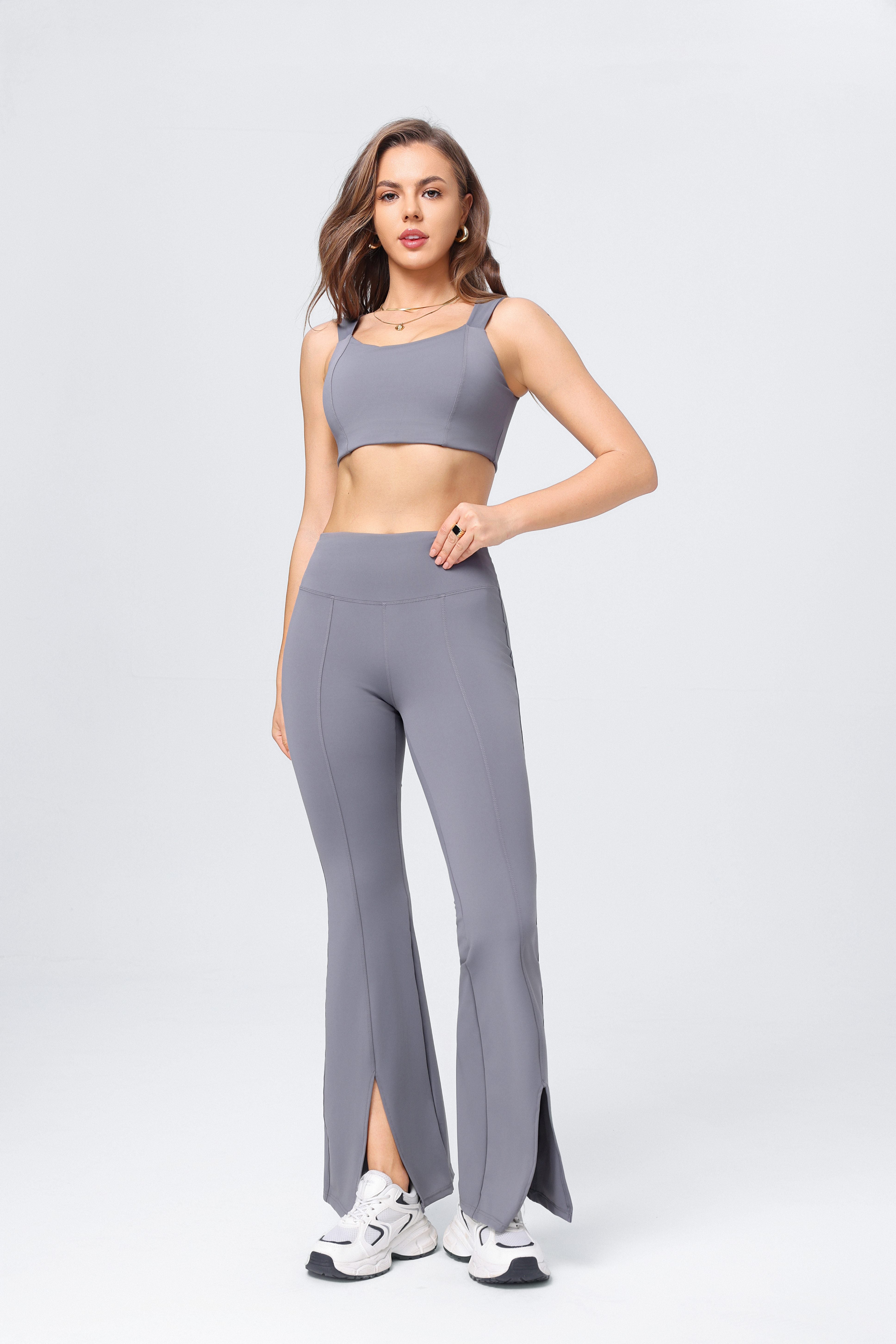 • Pantalones Acampanados: Los pantalones acampanados están divididos con realce de cadera. Añaden comodidad y estilo a tu rutina de yoga. Son ideales para movimientos que requieren flexibilidad y libertad de movimiento.
