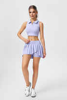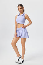 Conjunto de pantalón culotte plisado sin mangas con cuello polo y bolsillos incorporados