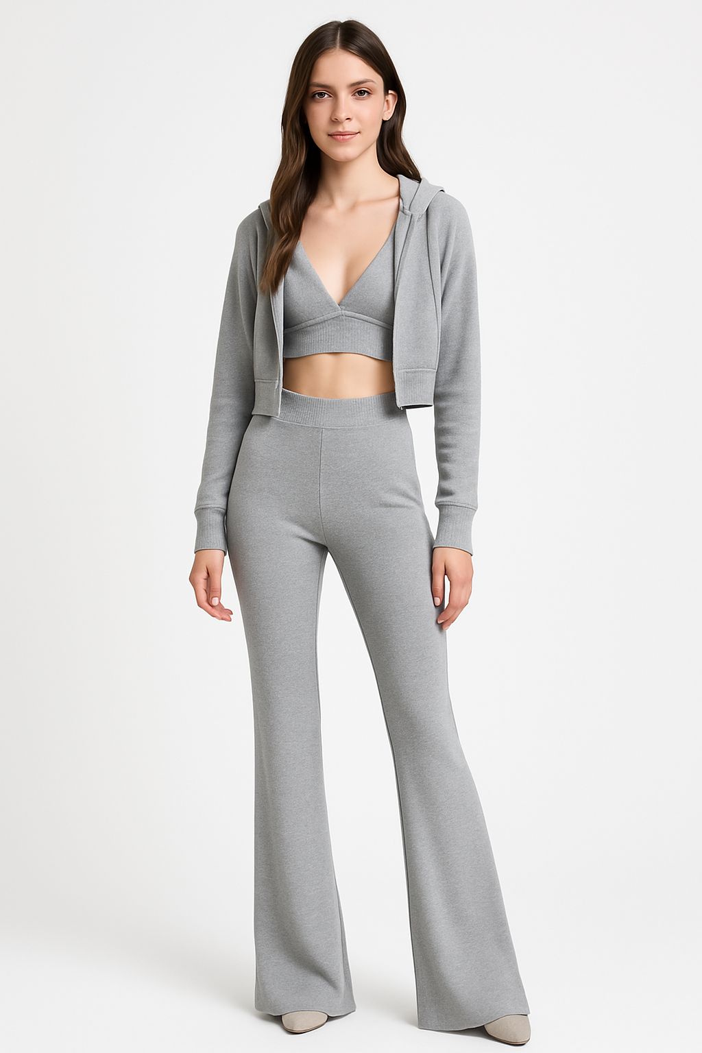 Conjunto deportivo y cómodo de pantalón acampanado, chaleco y chaqueta corta con cremallera