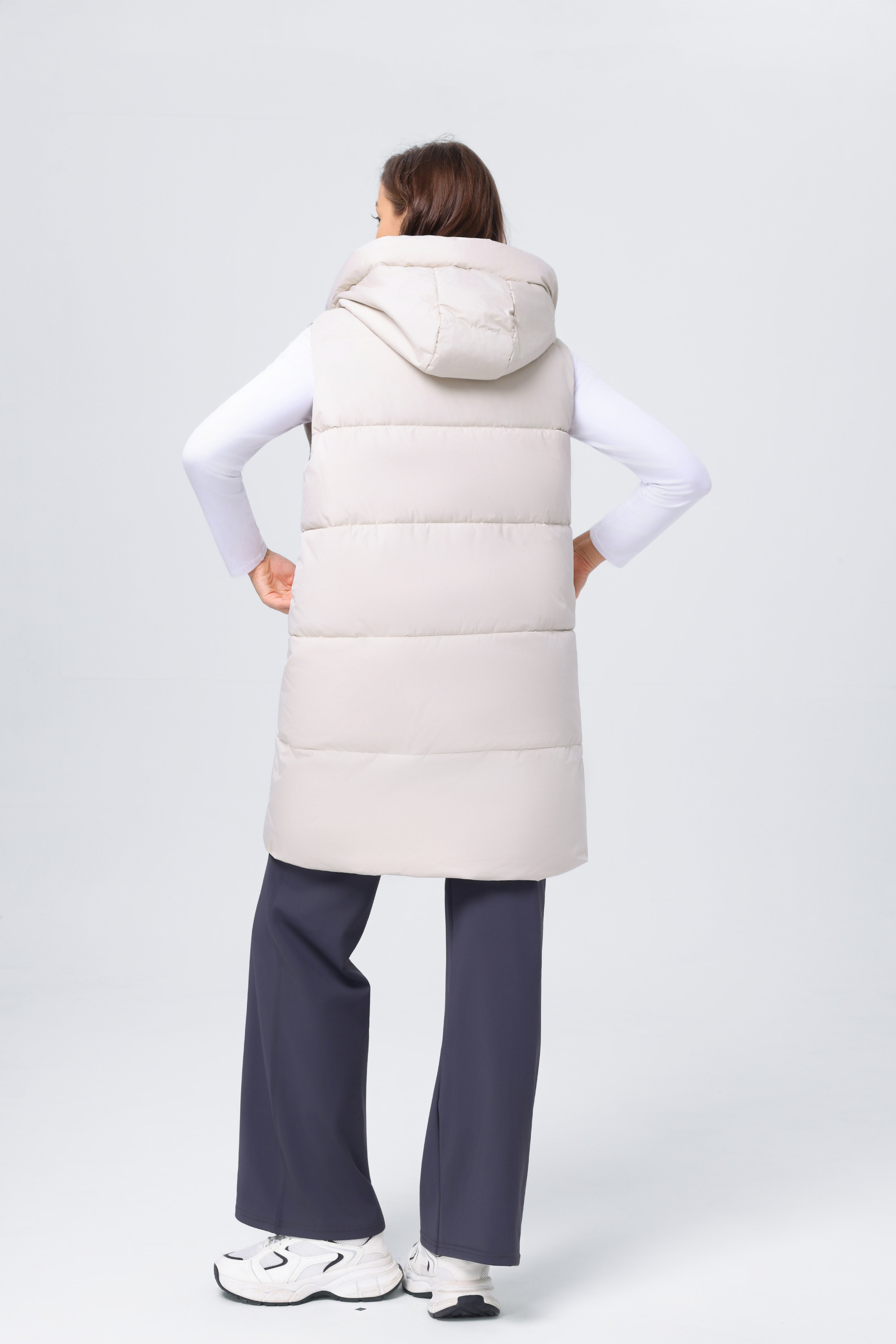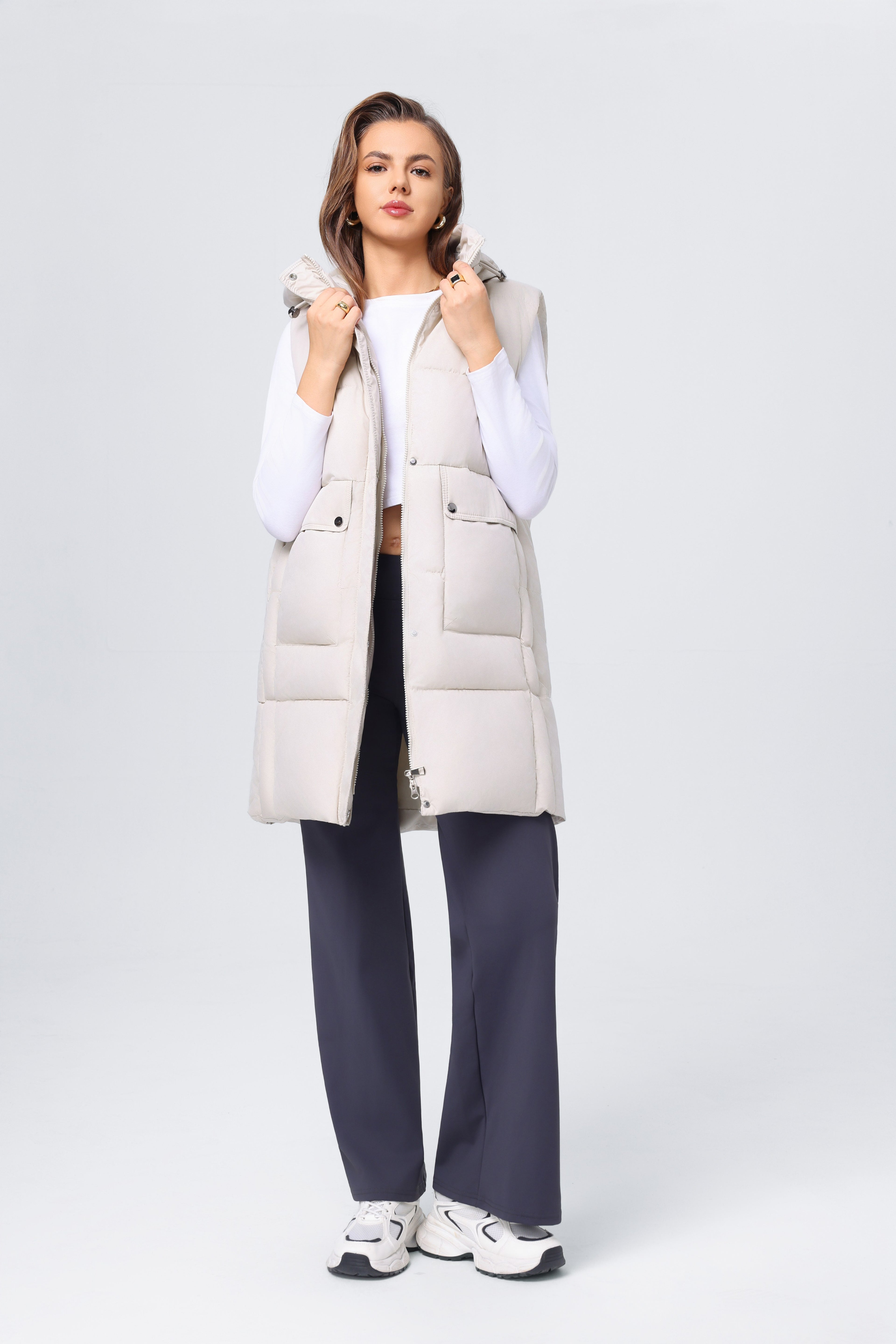 Esta prenda es una opción versátil para tu armario. Su estructura permite usarla como chaleco o chaqueta. Ideal para mantenerse abrigada sin sacrificar el estilo. Adecuada para ocasiones casuales o semi-formales.