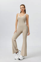 Ropa deportiva de yoga de una pieza con espalda abierta para un ajuste cómodo.
