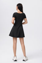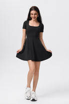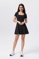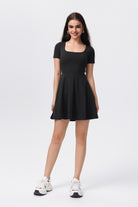 Vestido de Yoga Sencillo Ajustado y Plisado de Color Liso para Mujer en Negro Elegante y Funcional
