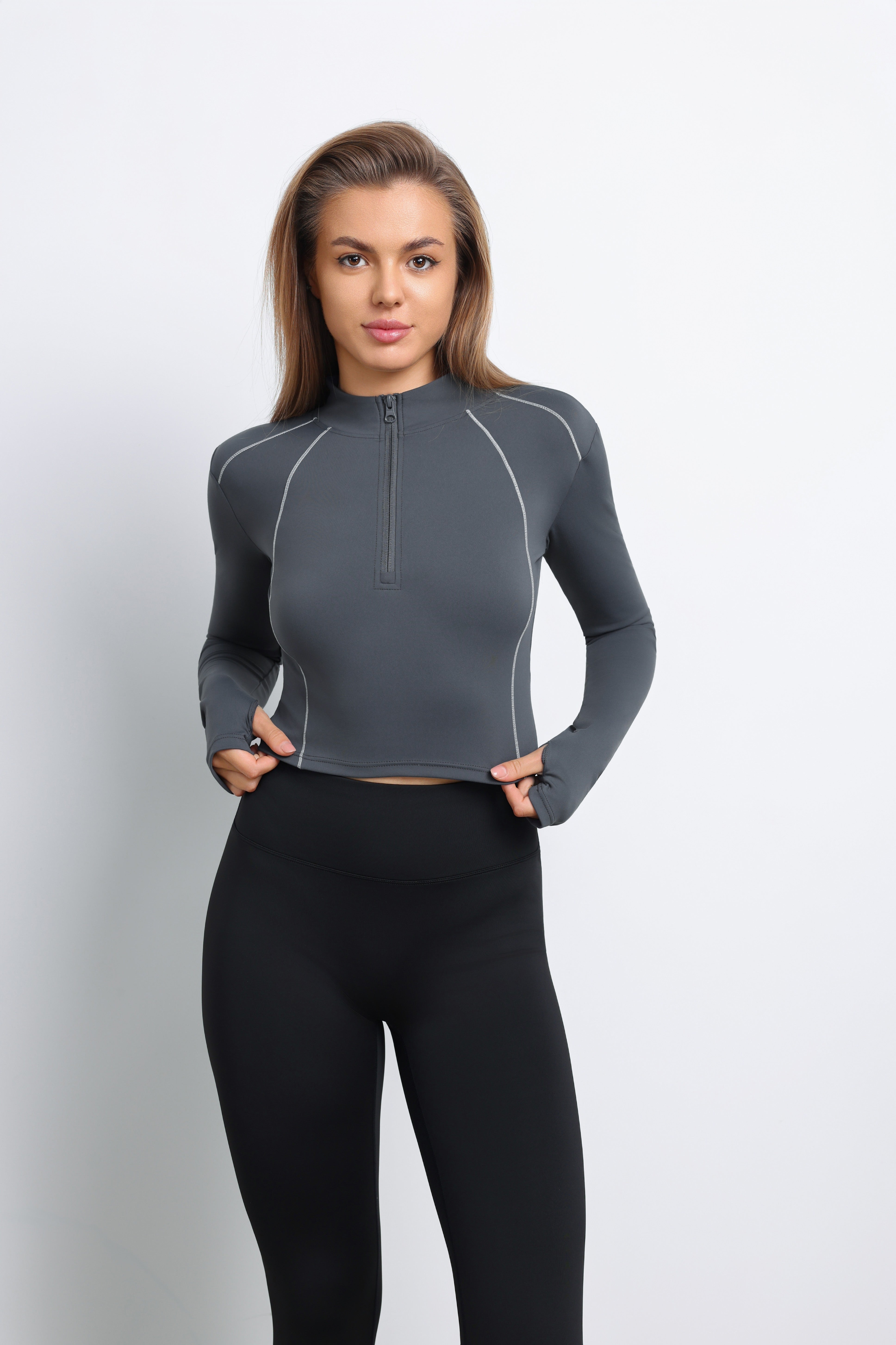 Camisa de manga larga ajustada con cintura ajustada y parte inferior ajustada