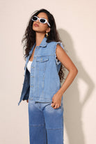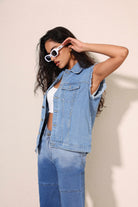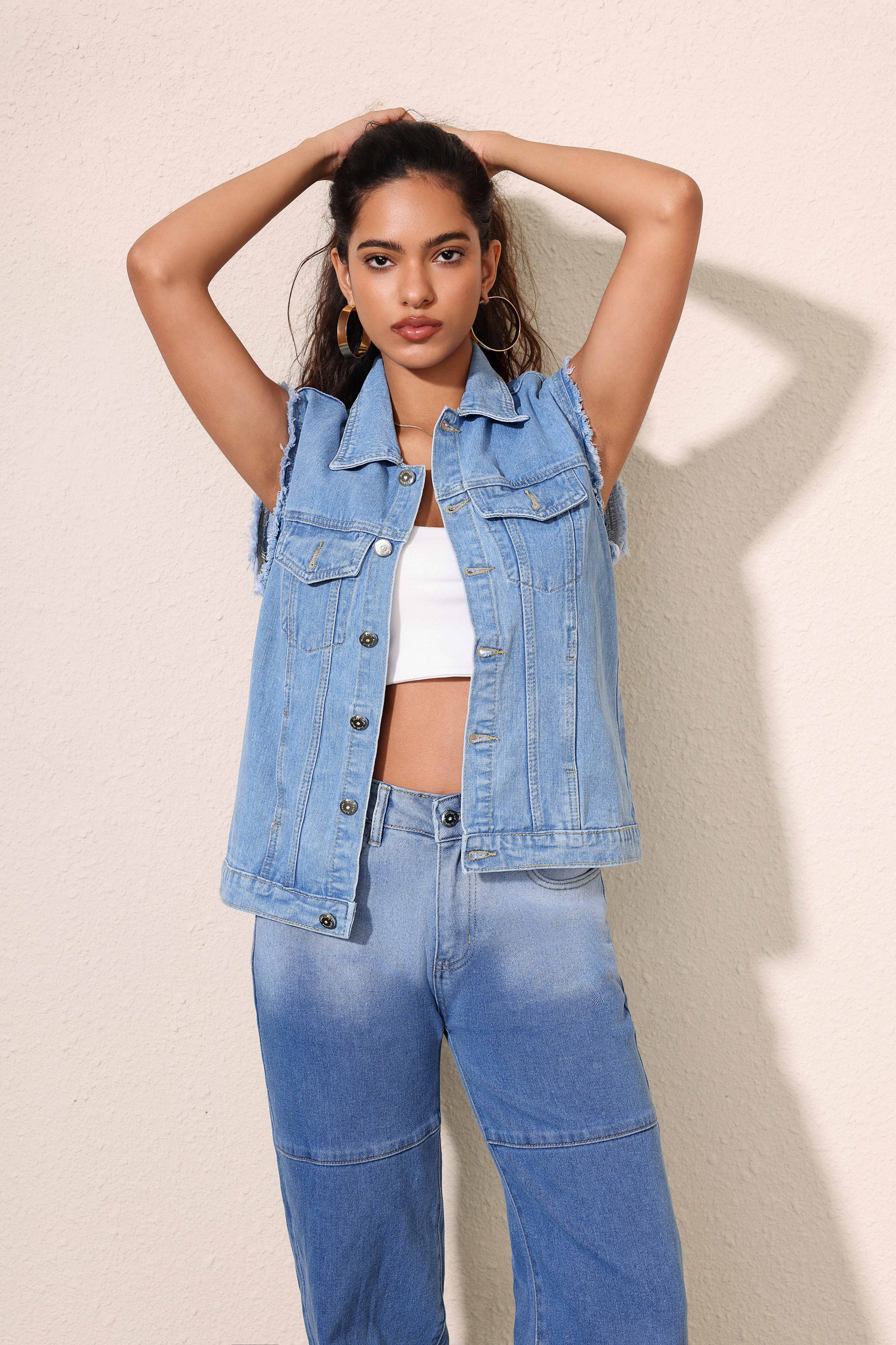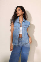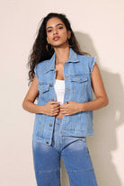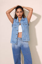 Chaleco vaquero con dos bolsillos delanteros, color azul claro
