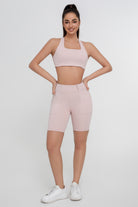 Conjunto de dos piezas de sujetador deportivo con tirantes de color liso para mujer
