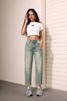 Jeans Rectos Claro con Desgastes y Volantes Estilo Urbano Trendy