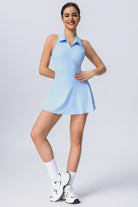 Vestido de tenis transpirable con cuello polo y cintura alta, adelgazante, antiexposición, ropa deportiva de yoga para mujer